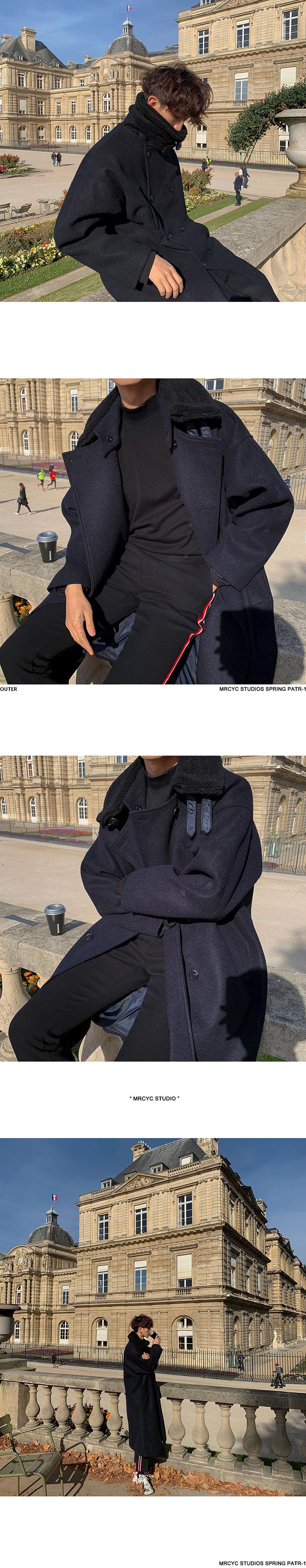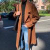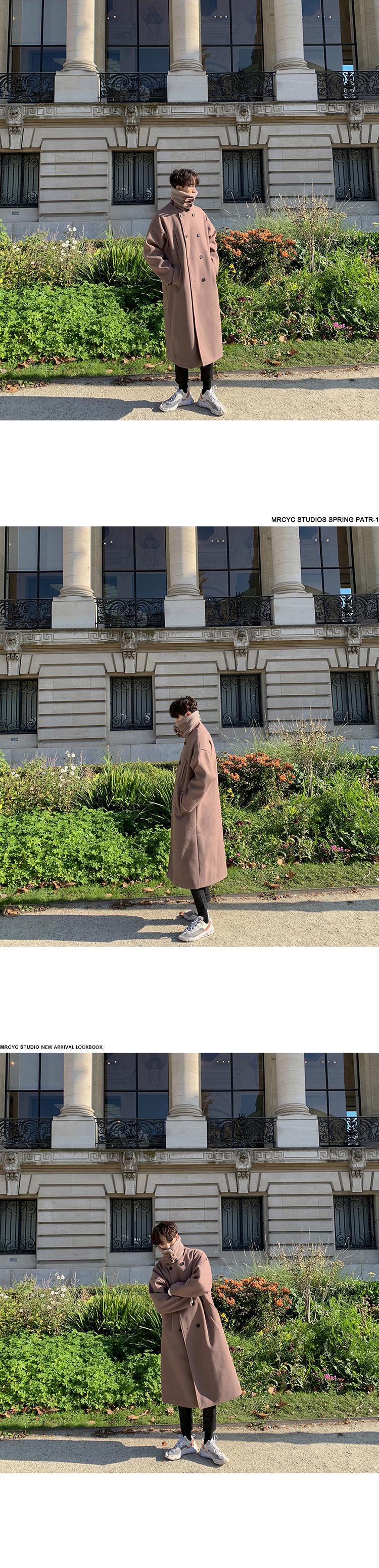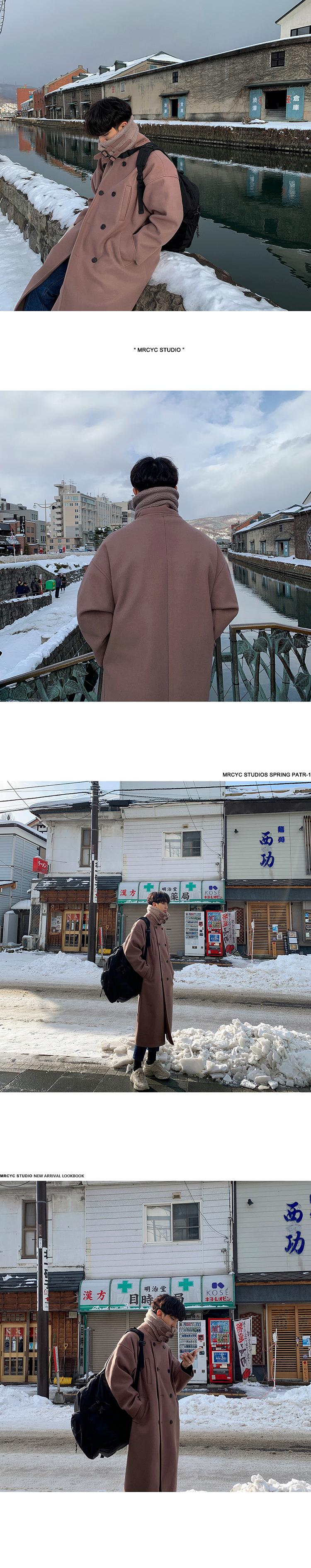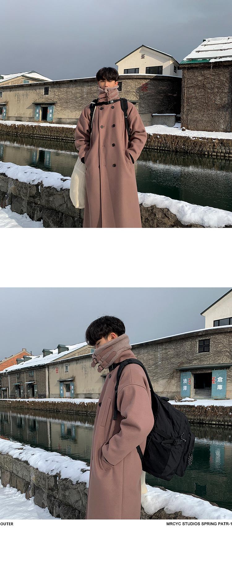 Abrigo de lana cruzado de invierno MYQ, abrigo de lana de longitud media para hombre, abrigo holgado de lana de cordero coreana para hombre