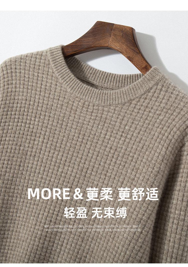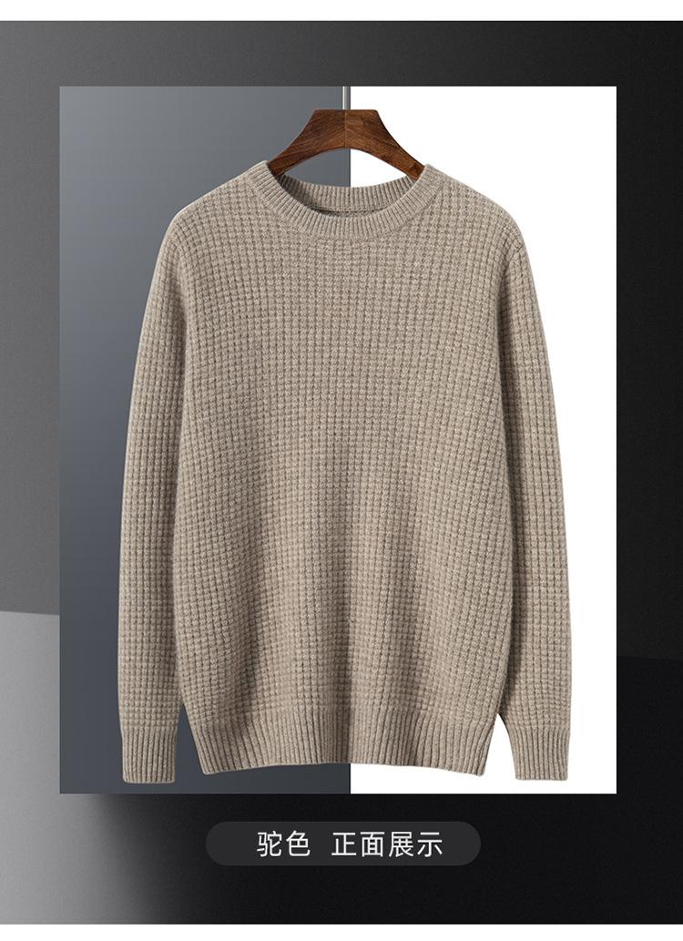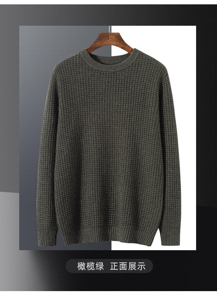 Suéter para hombre 2023 nuevo top para hombre otoño e invierno moda fondo cálido waffle suéter de cuello redondo para hombre