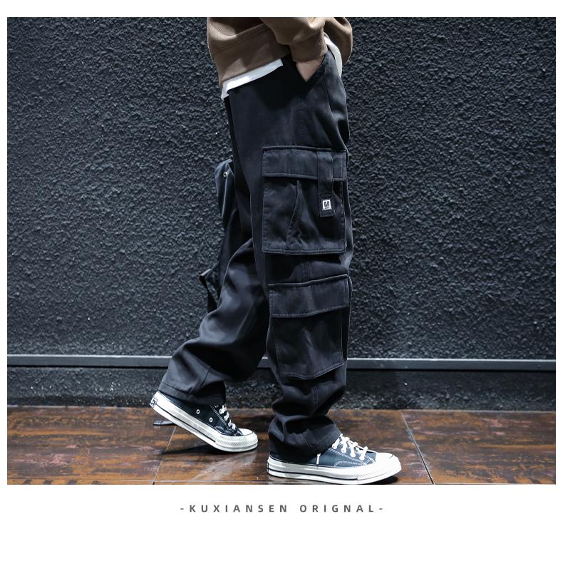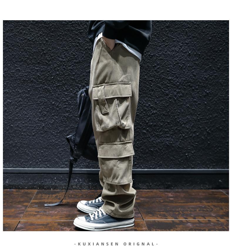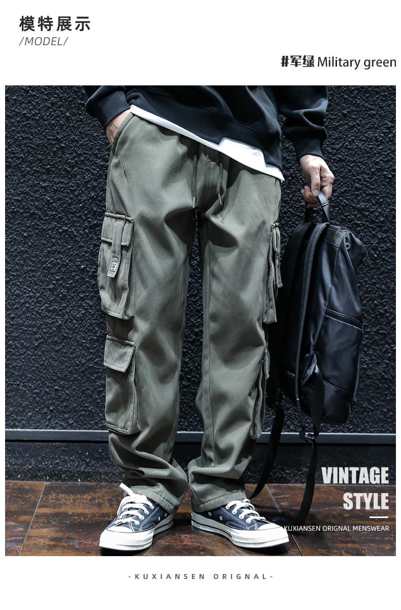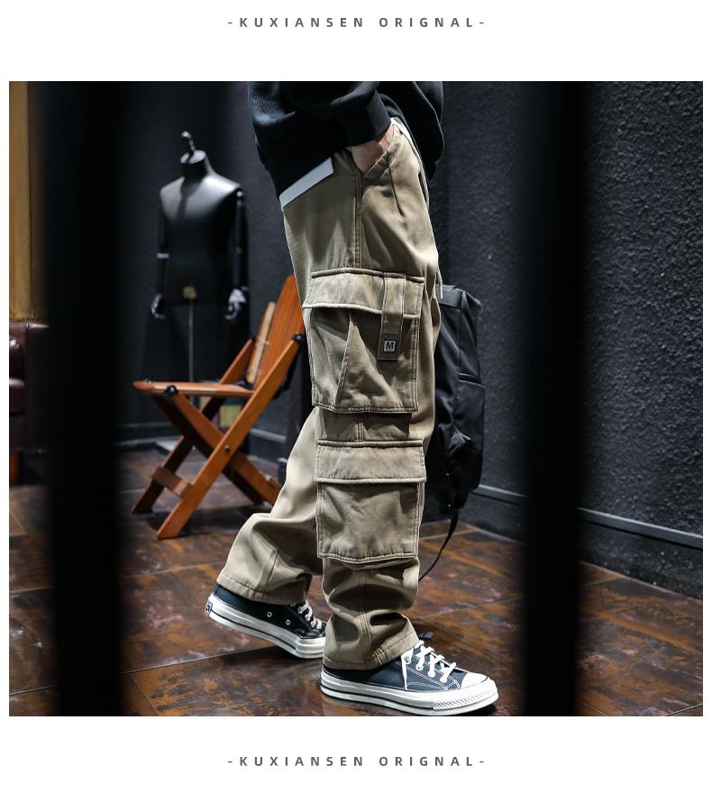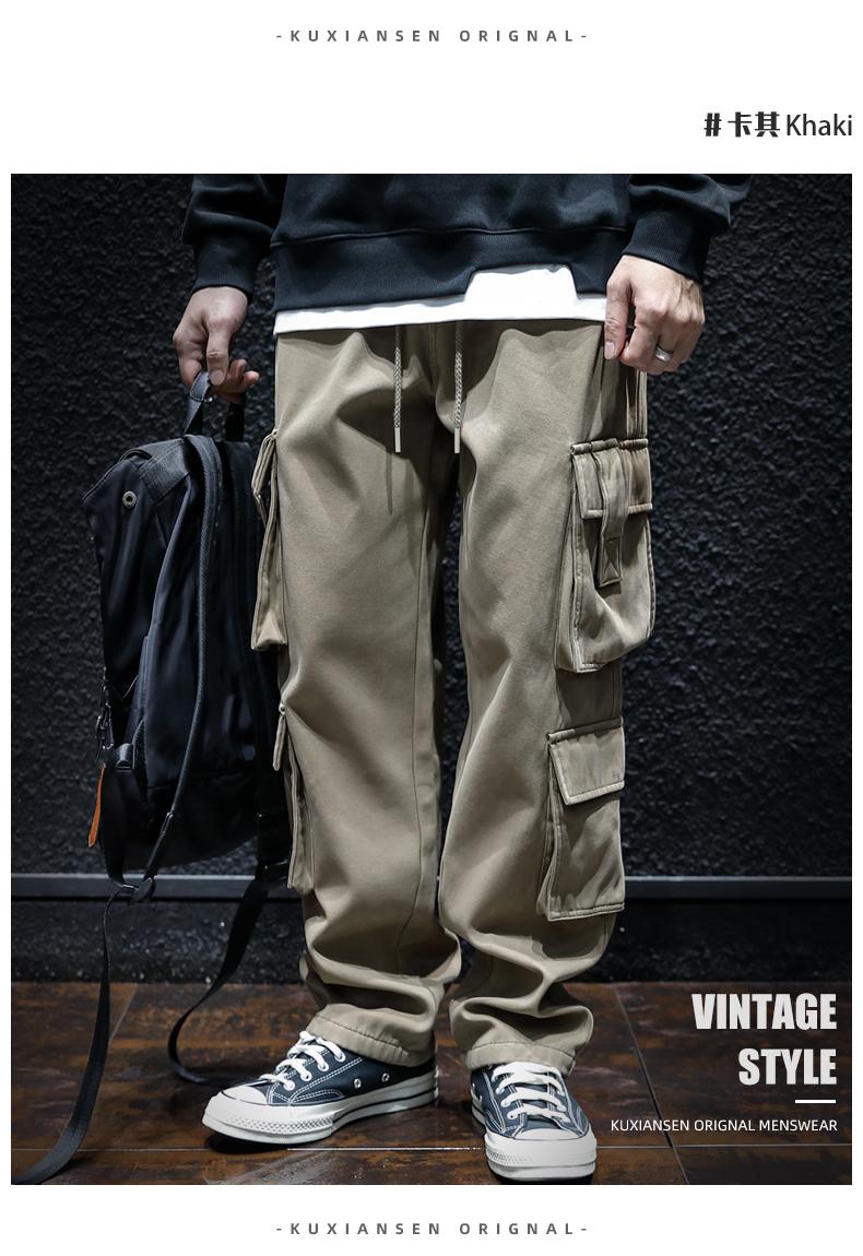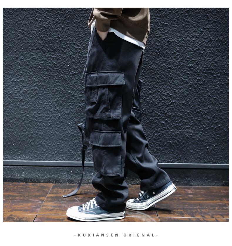 Mono recto para hombre, holgado, de marca, moderno, de primavera, con múltiples bolsillos, de talla grande, pantalones casuales de moda para primavera y otoño.