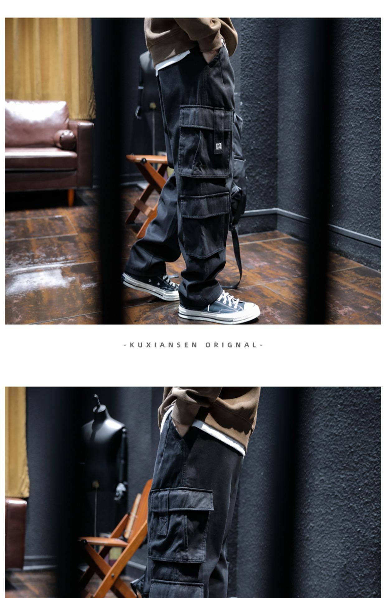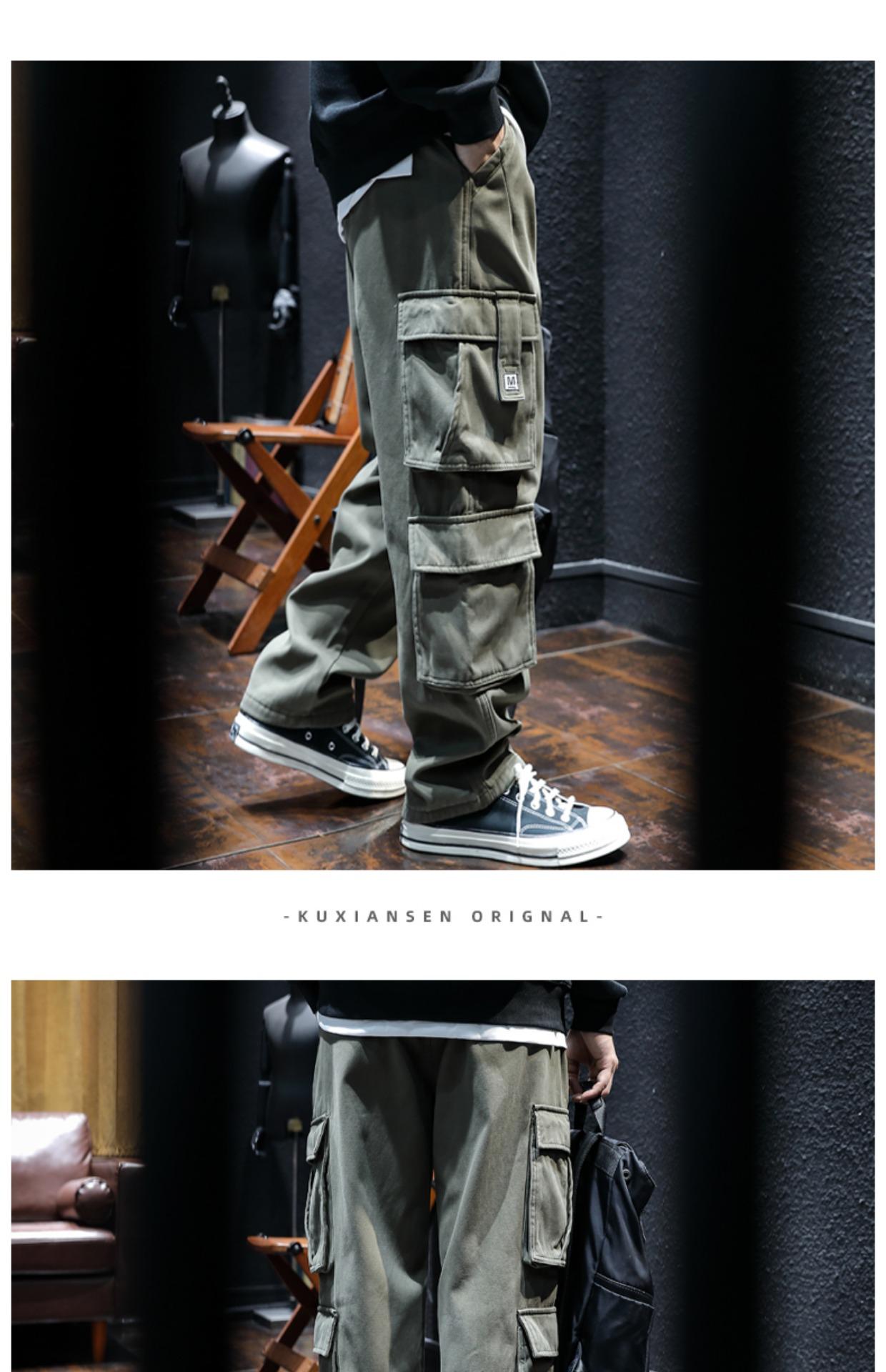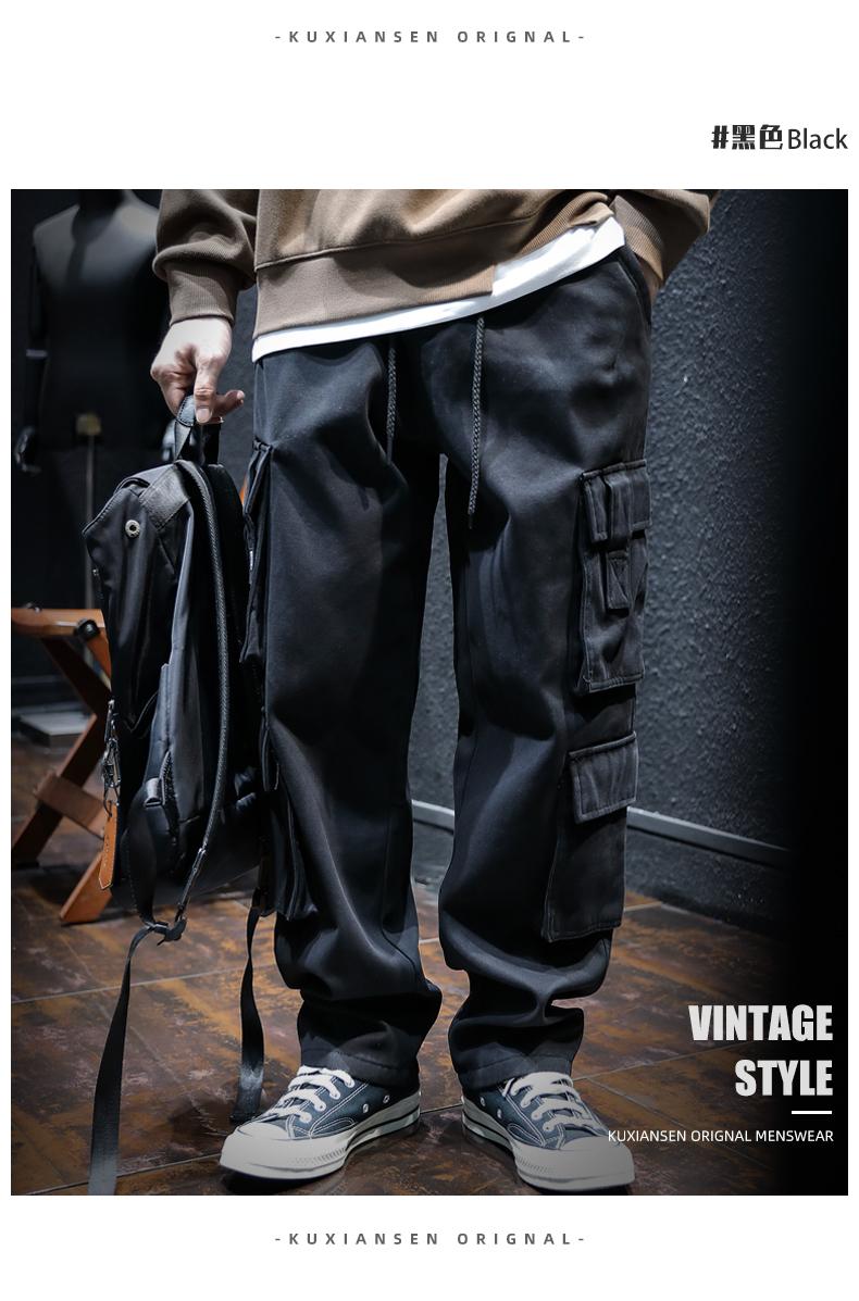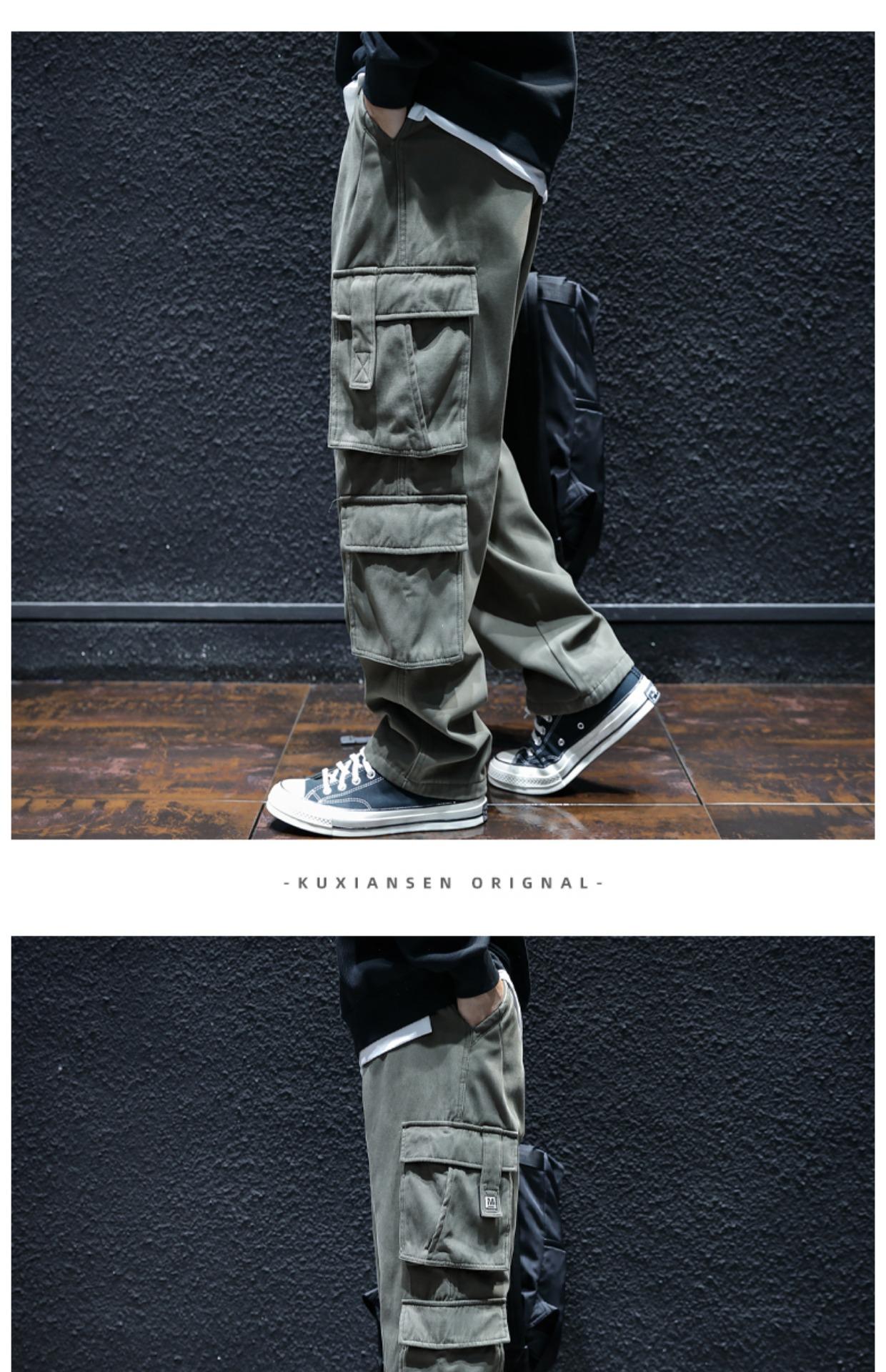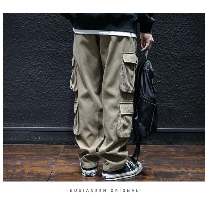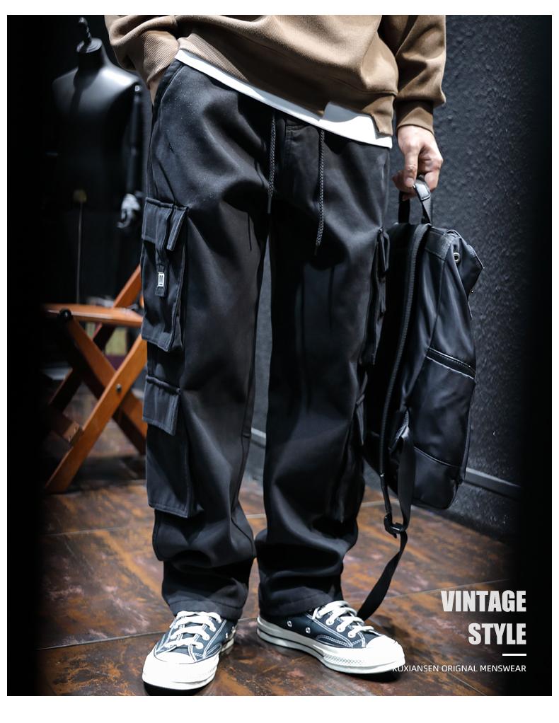 Mono recto para hombre, holgado, de marca, moderno, de primavera, con múltiples bolsillos, de talla grande, pantalones casuales de moda para primavera y otoño.