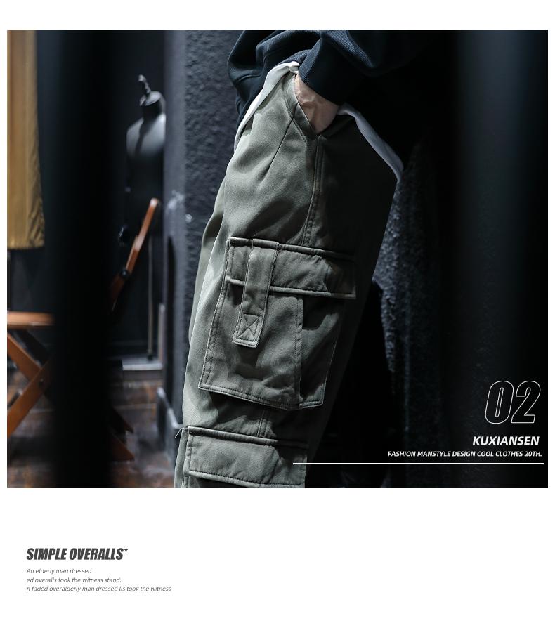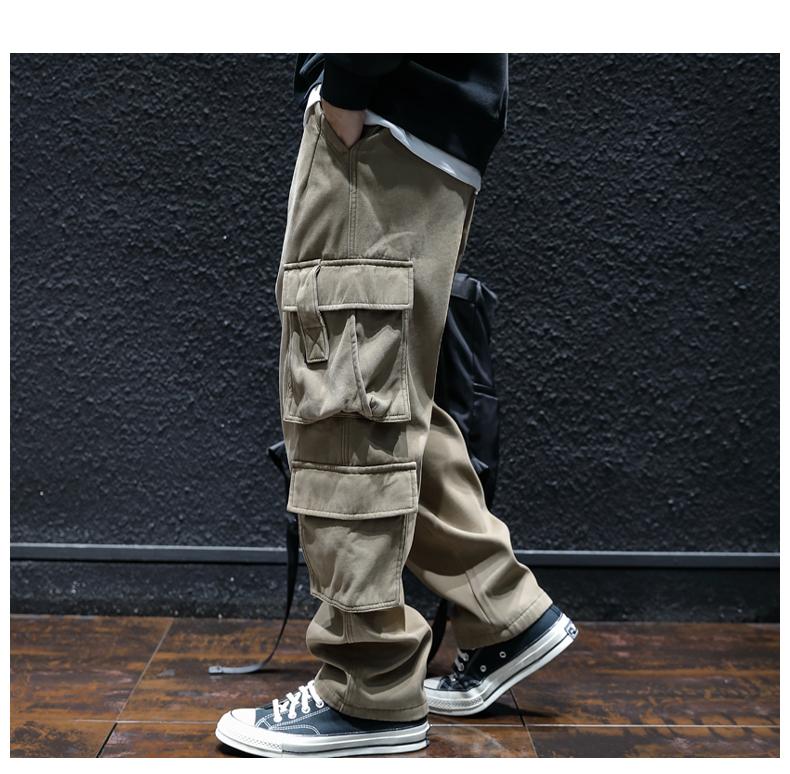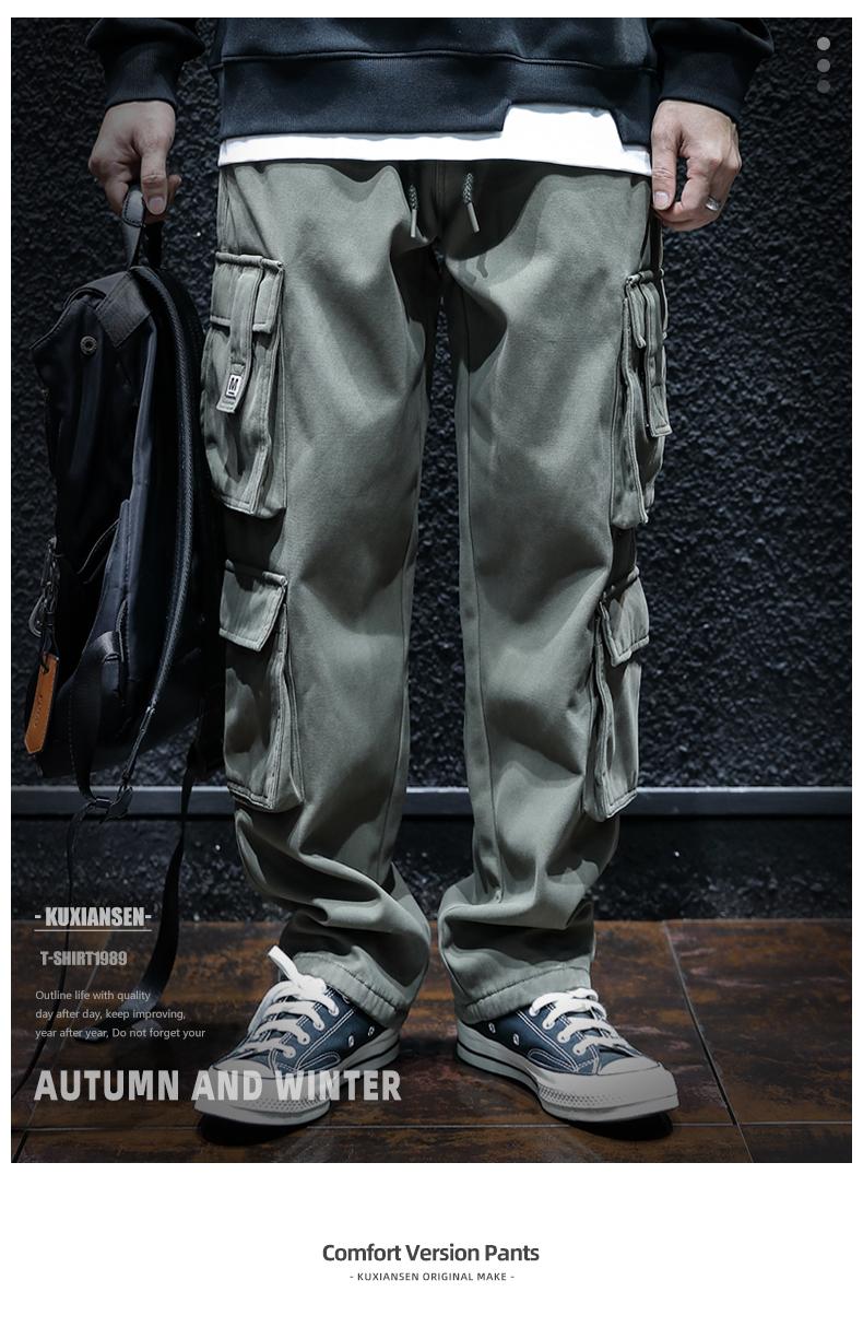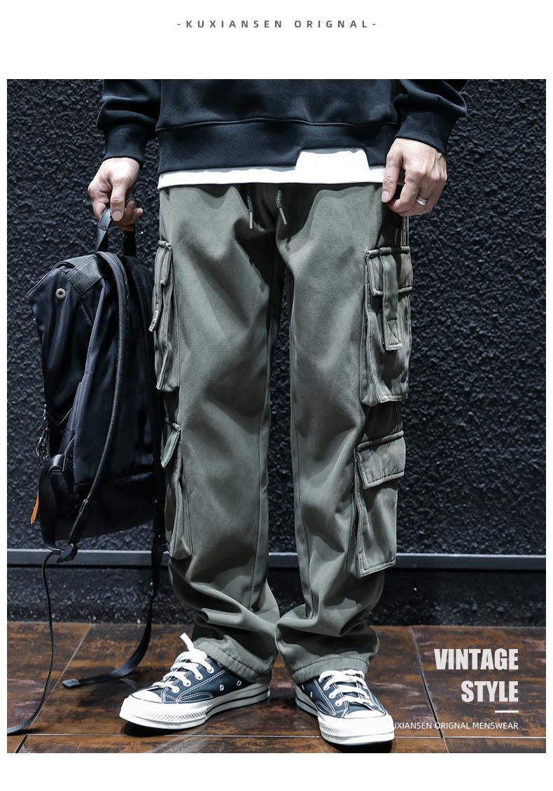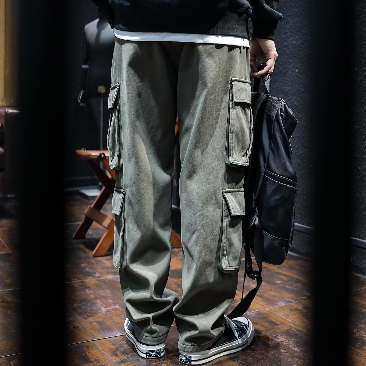 Mono recto para hombre, holgado, de marca, moderno, de primavera, con múltiples bolsillos, de talla grande, pantalones casuales de moda para primavera y otoño.