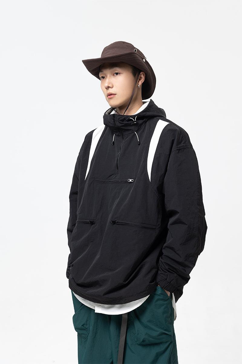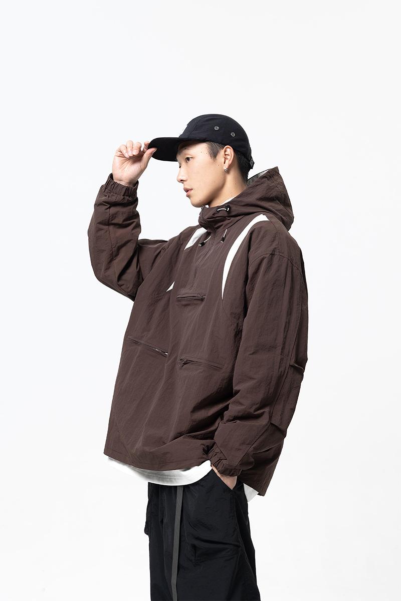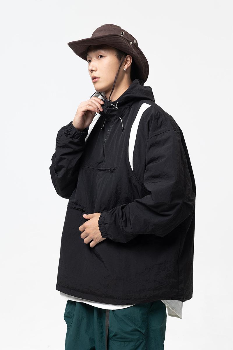 FORN3 2023 Otoño Invierno Chaqueta con capucha multibolsillos para hombre, estilo retro japonés, holgado, con costuras de colores contrastantes