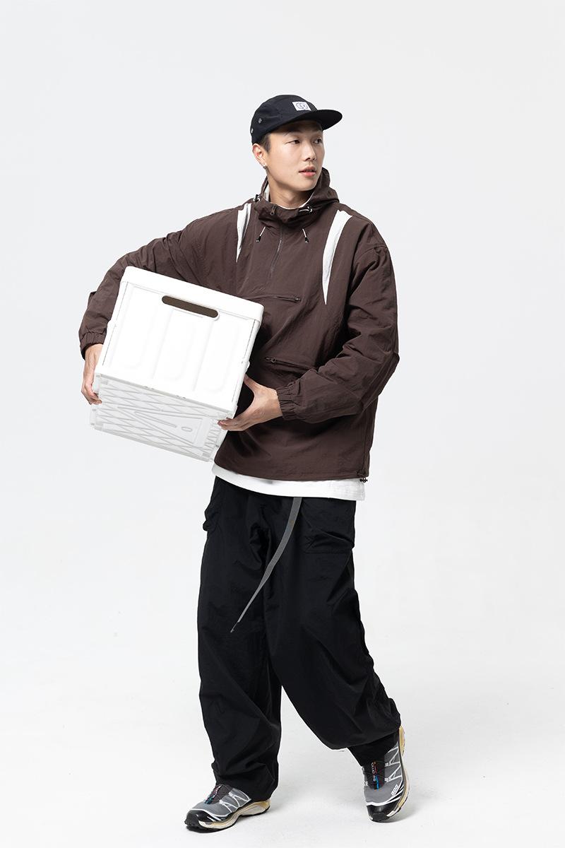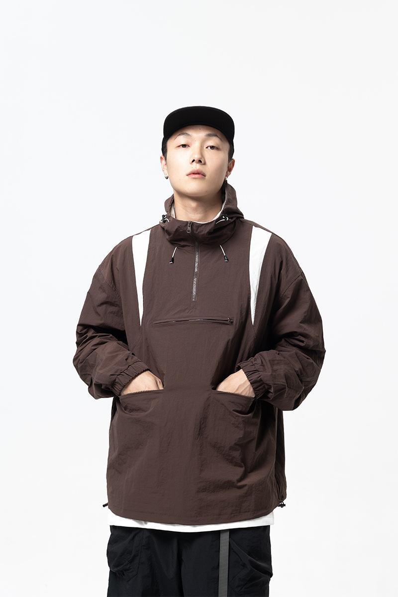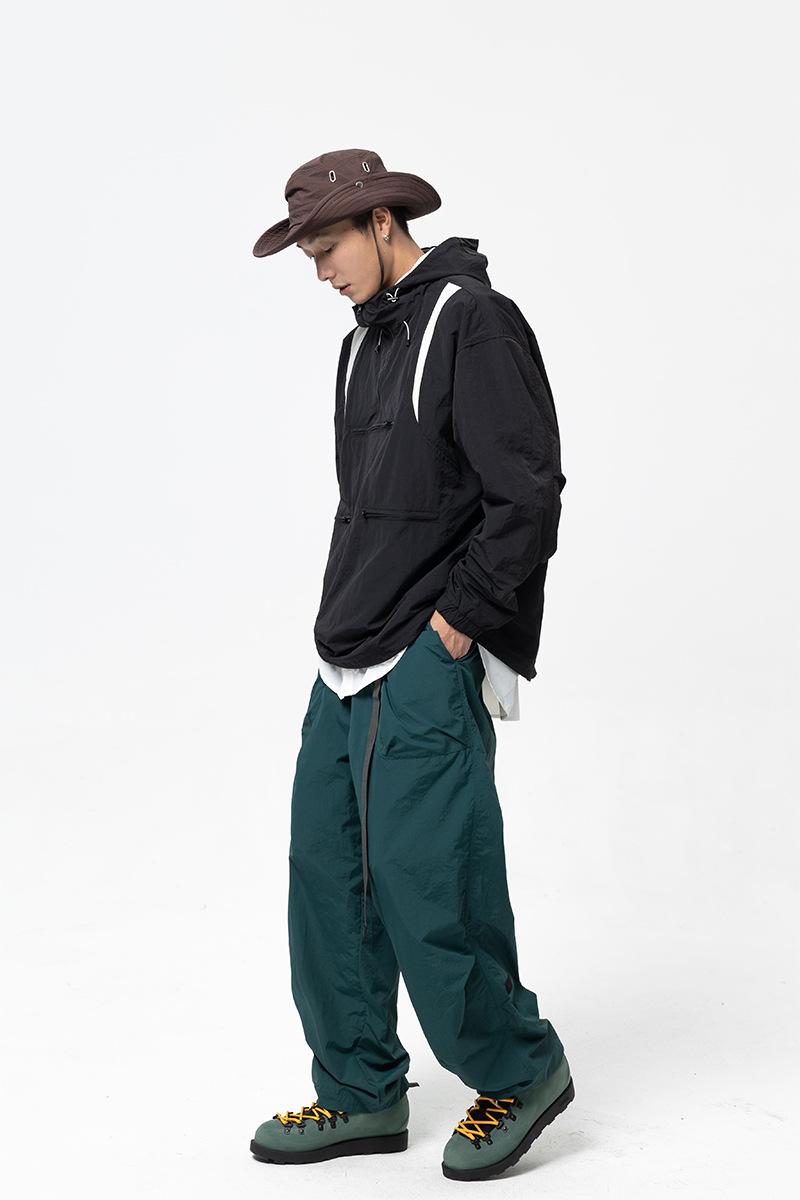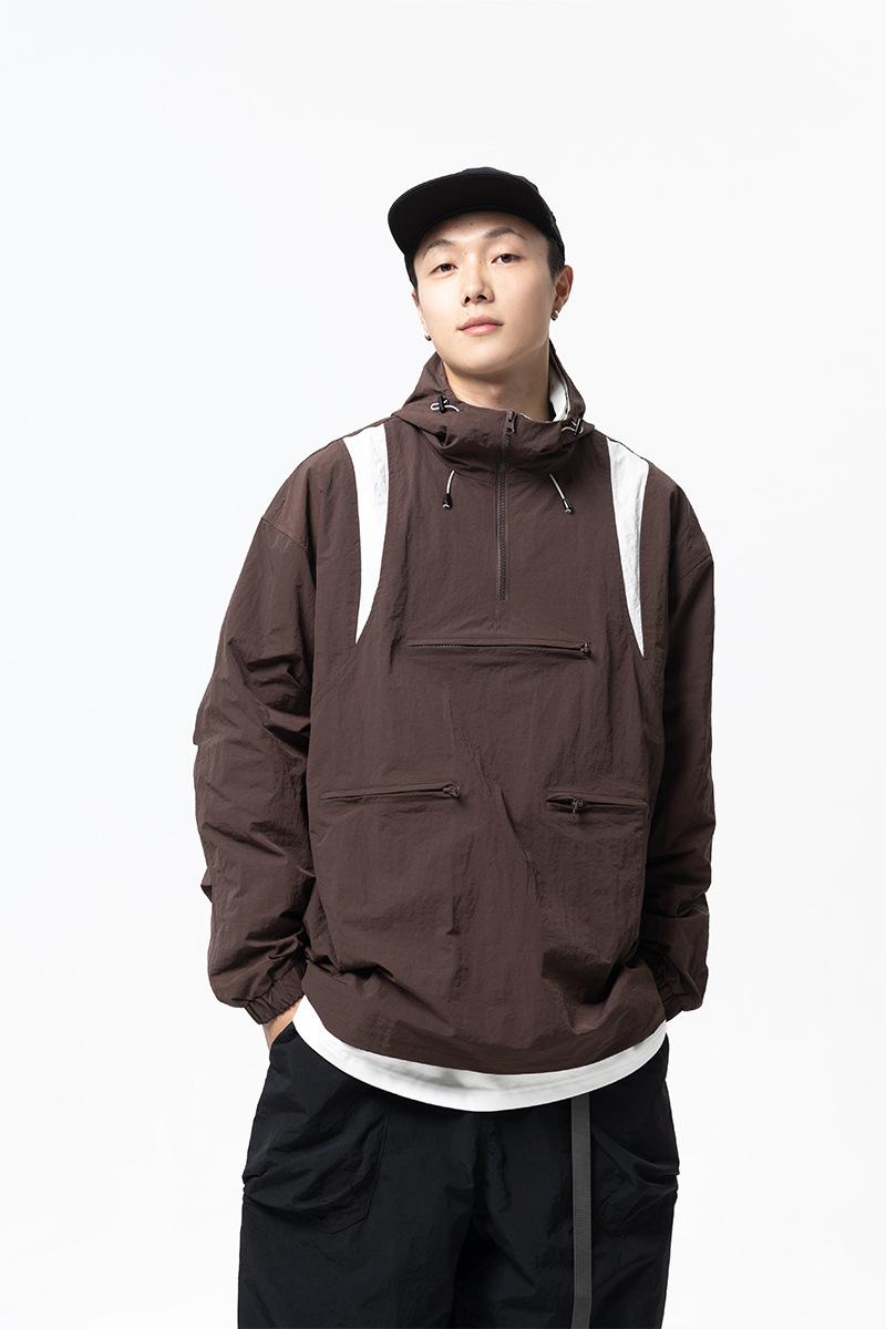 FORN3 2023 Otoño Invierno Chaqueta con capucha multibolsillos para hombre, estilo retro japonés, holgado, con costuras de colores contrastantes
