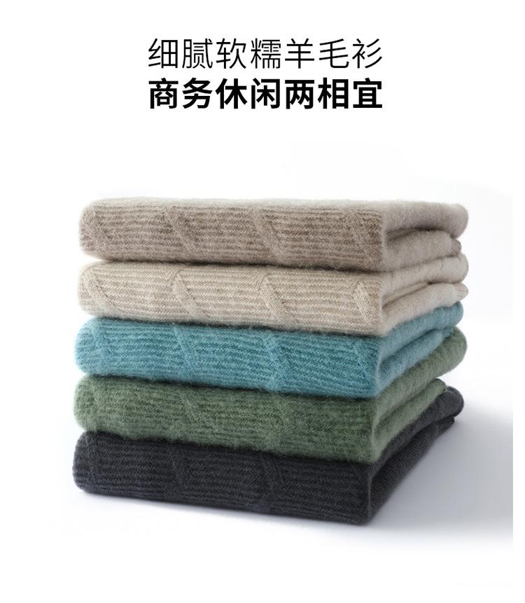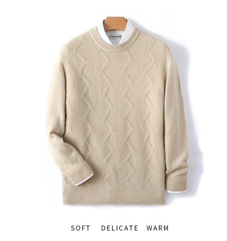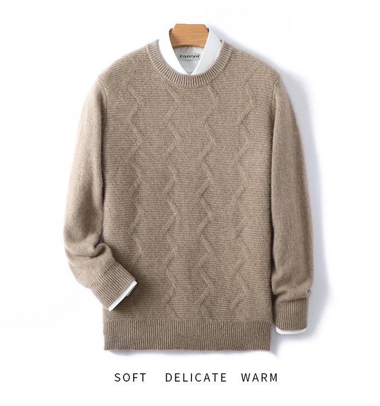 Suéter de lana 100% pura para otoño e invierno, nuevo, suéter grueso de cuello redondo para hombre, suéter informal de negocios de punto de cachemira.