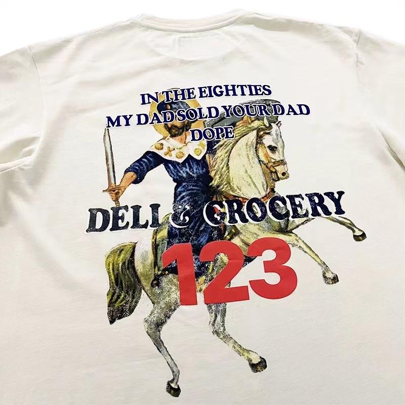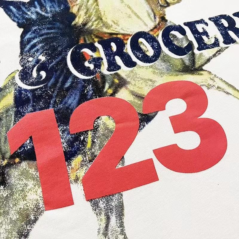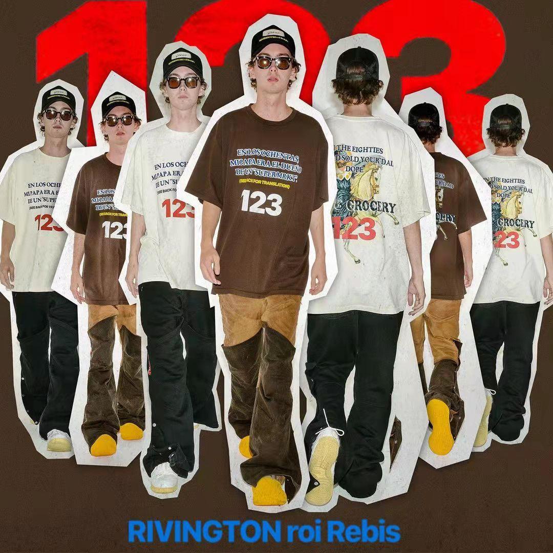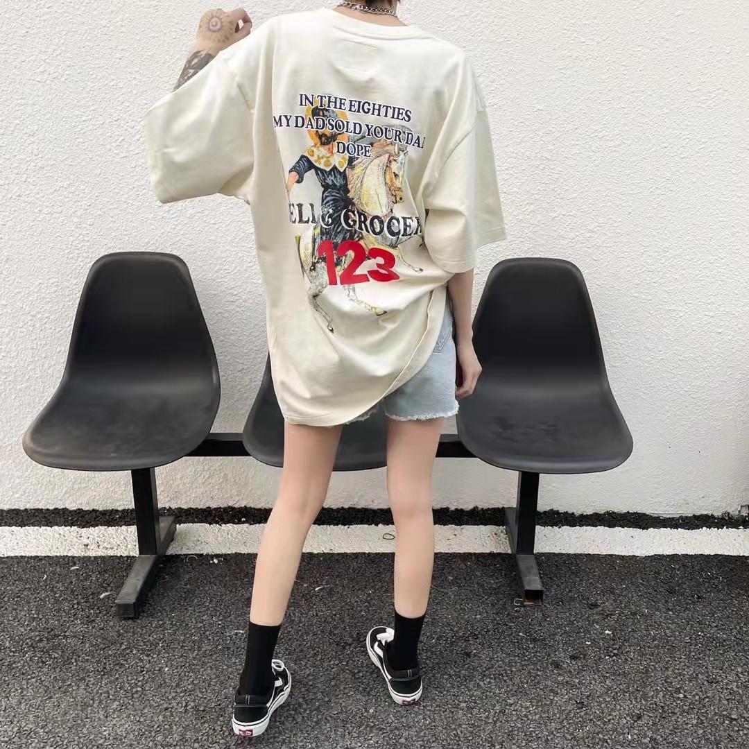 Compra RRR123 Camiseta holgada informal de manga corta con estampado de letras de caballero digital retro desgastado para hombre y mujer de High Street American al por mayor en Joom.pro