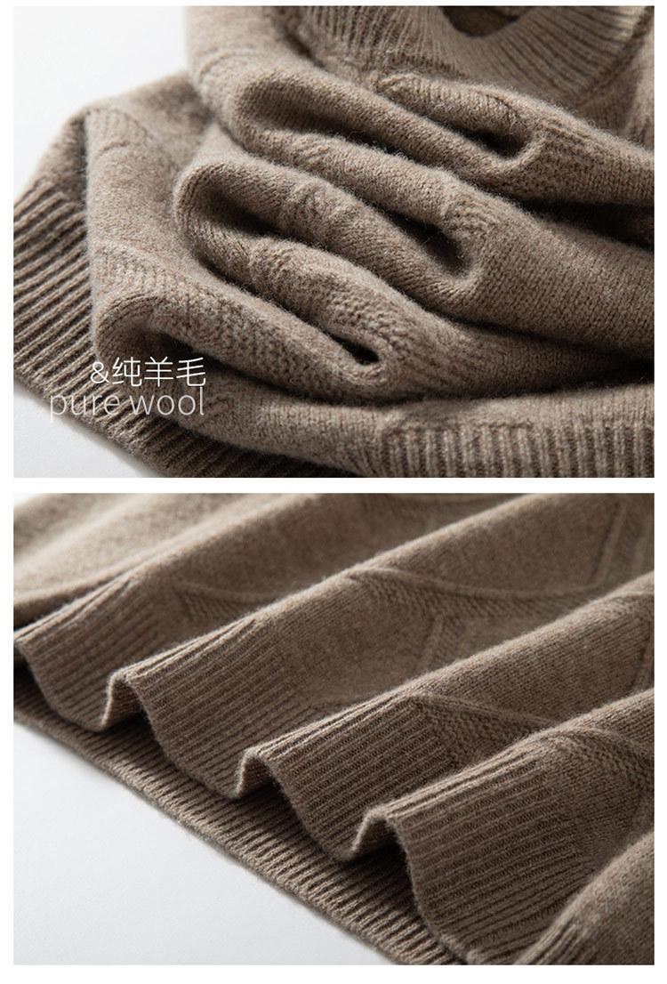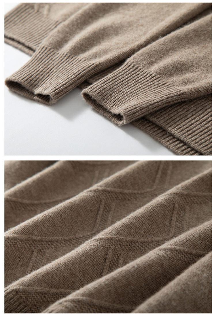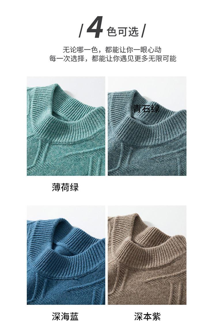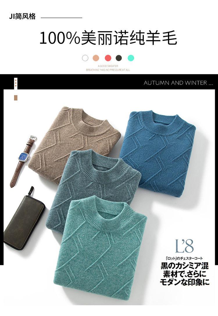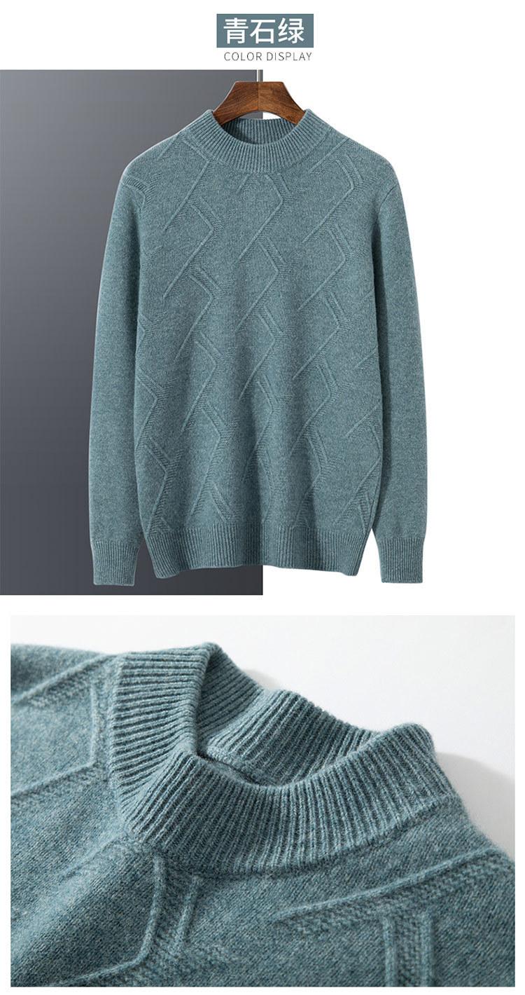 Suéter de cuello alto medio casual para hombre de otoño e invierno, suéter grueso de jacquard, suéter de color sólido con parte inferior, manga larga interior