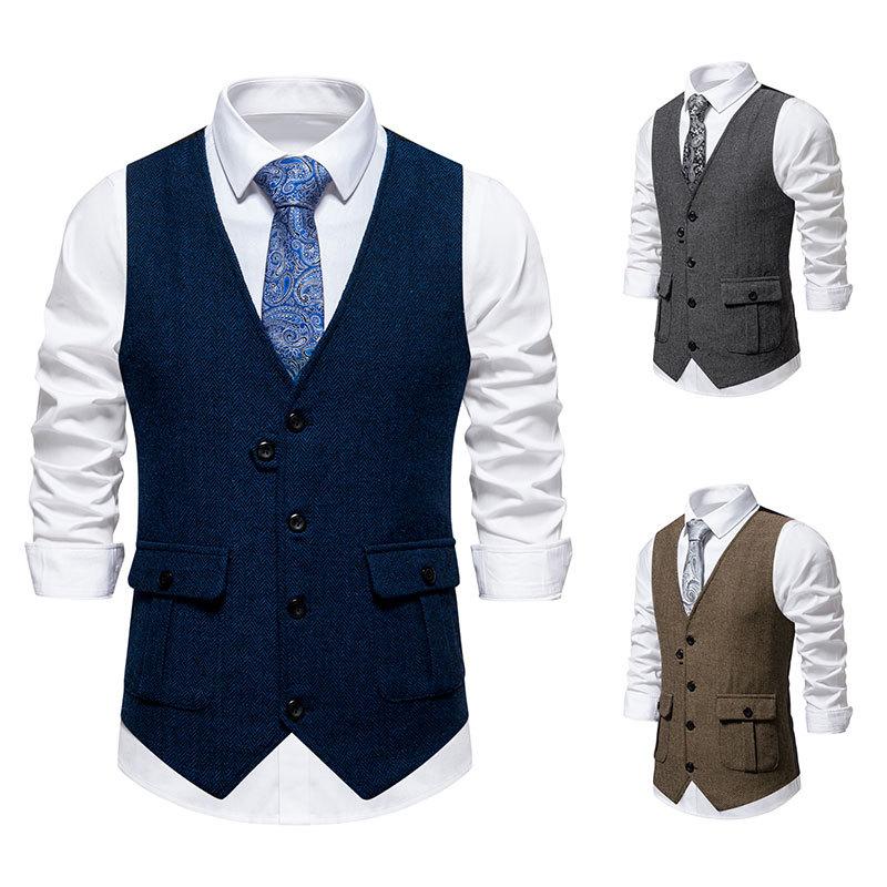 Chaleco de traje para hombre con cuello en V y costuras de bolsillo de color sólido, talla europea transfronteriza, primavera y verano de 2024 de Amazon