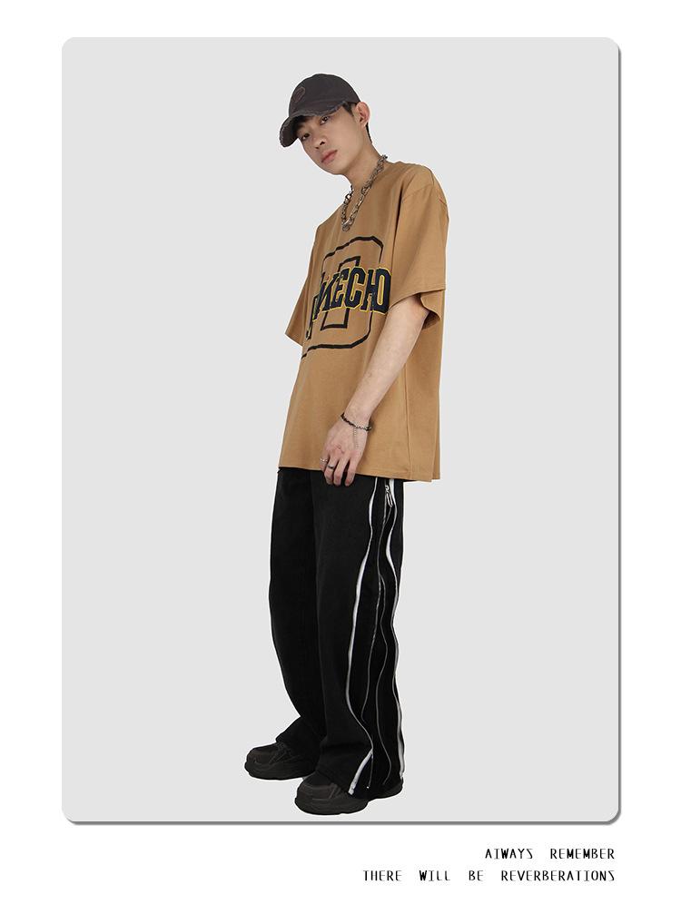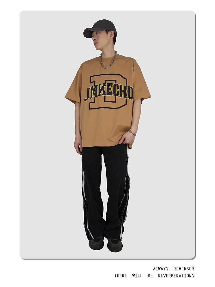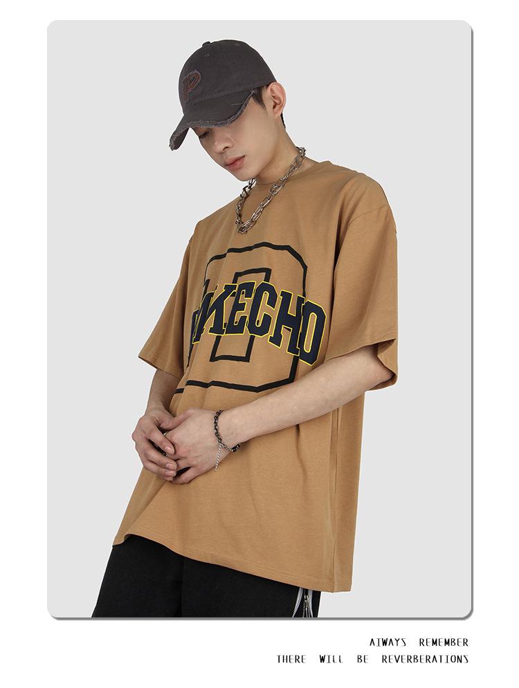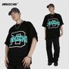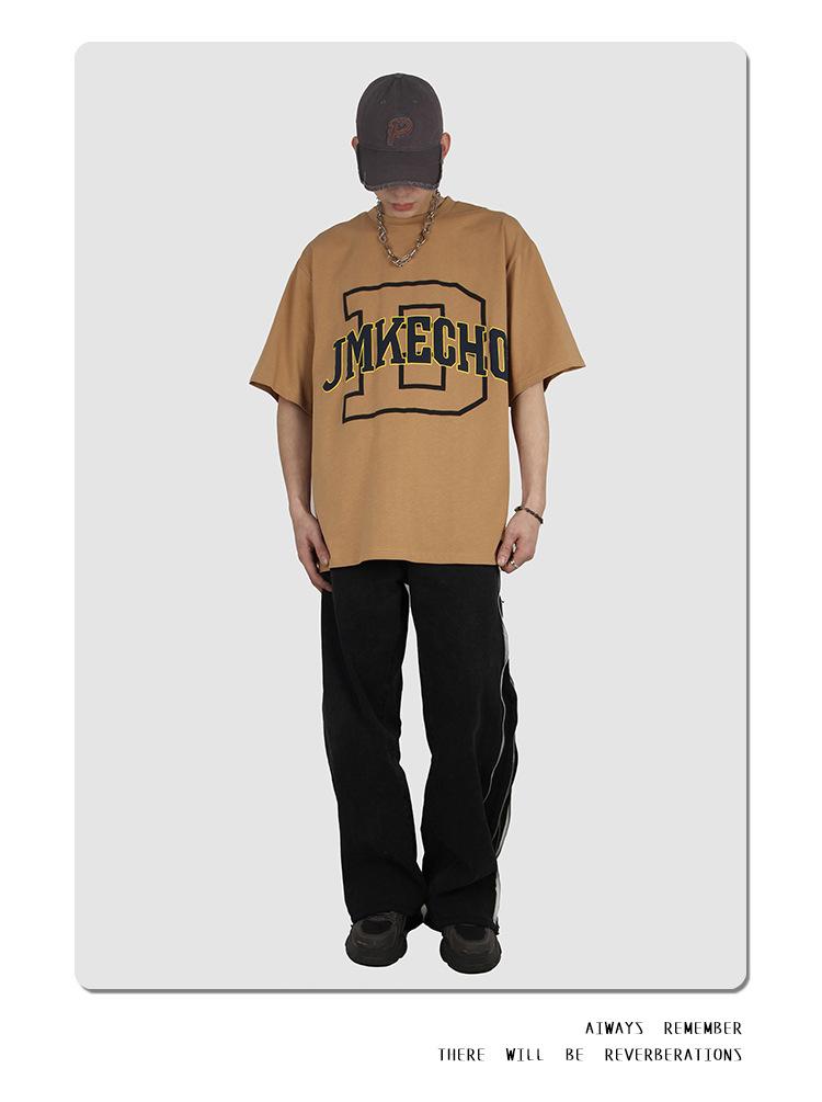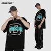 JMKECHO - Camiseta de manga corta con estampado de letras de marca de moda de verano para hombre, holgada, informal, con hombros descubiertos, para hombre y mujer