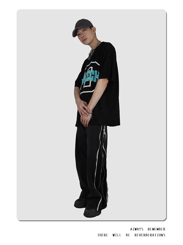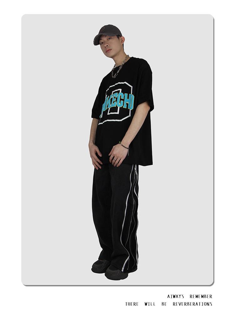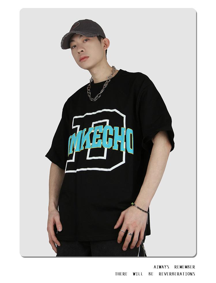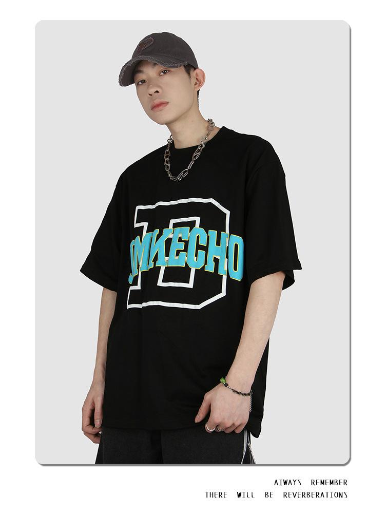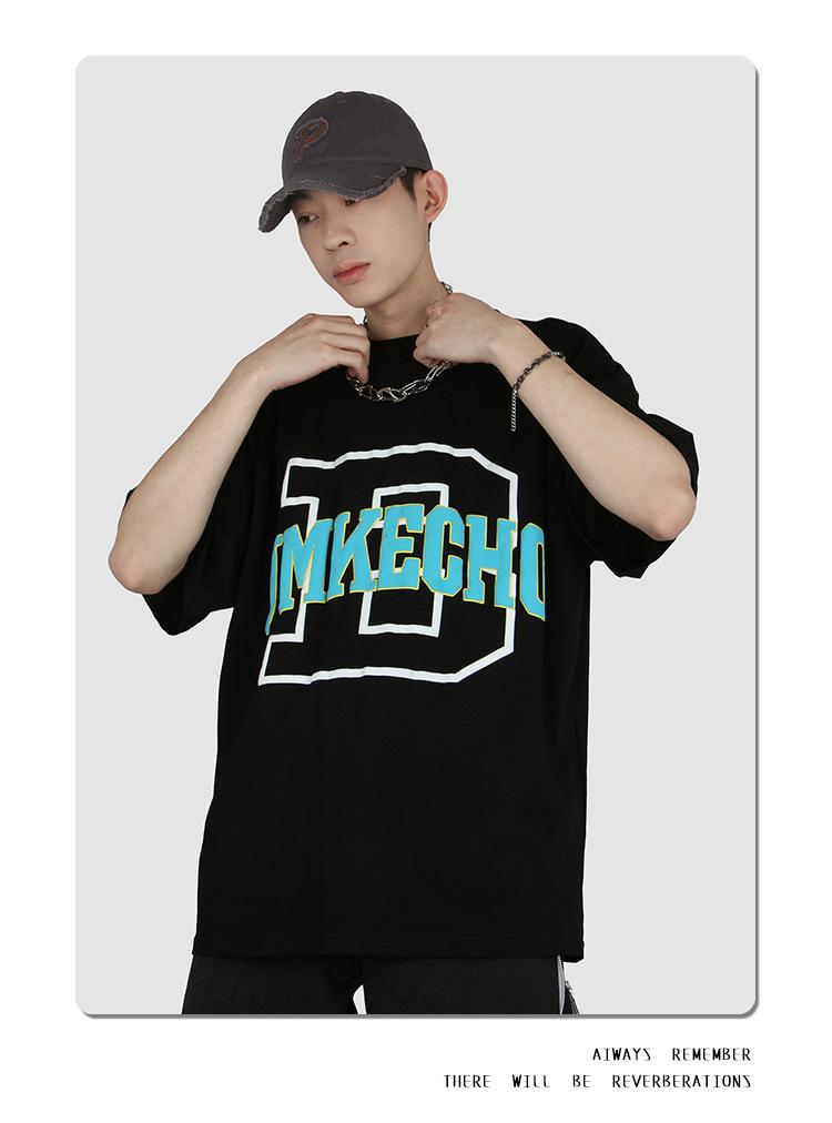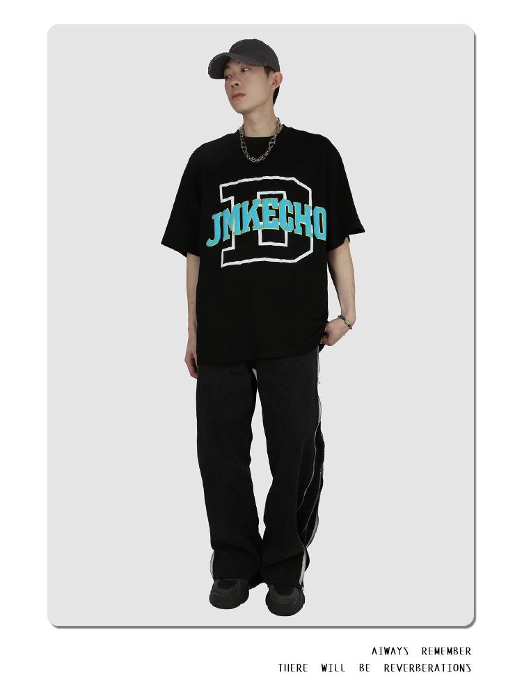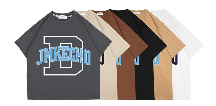 JMK8843 short sleeve letter D foam print black, JMK8843 short sleeve letter D foam printing White, JMK8843 Sho...