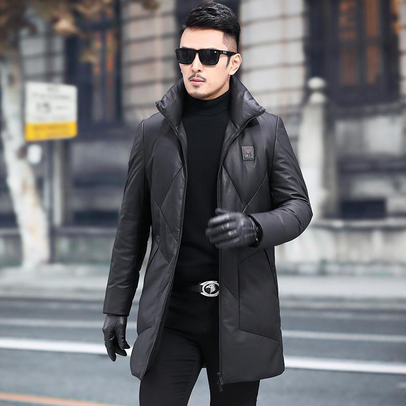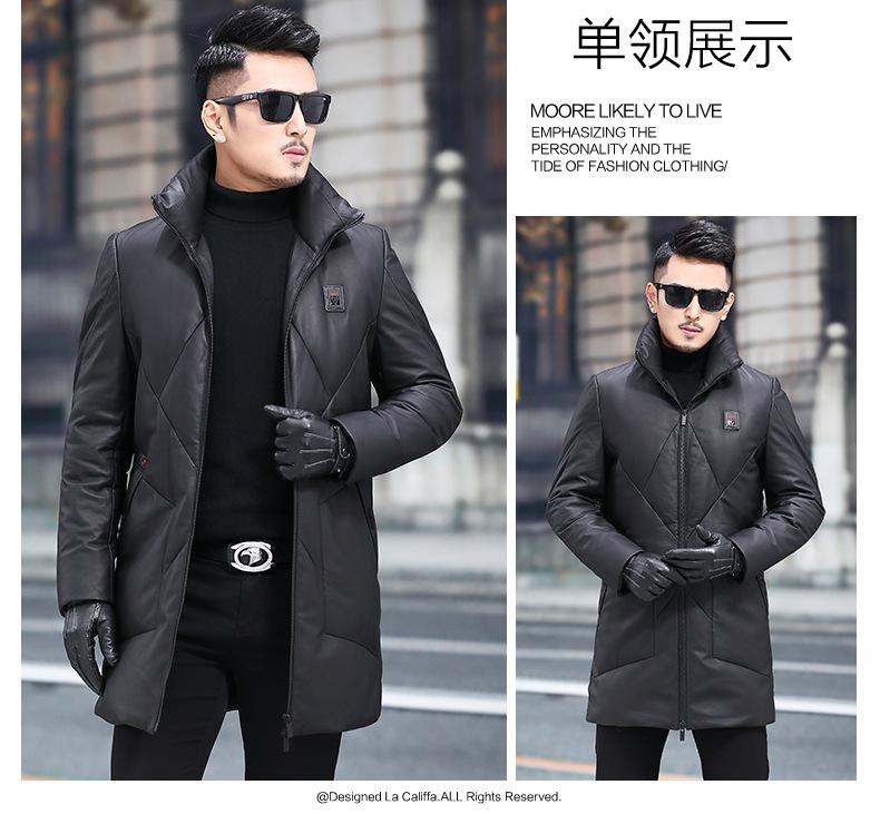 2025 Nueva Chaqueta de Cuero Genuino para Hombre Chaqueta Acolchada Cuero de Oveja Haining Chaqueta de Cuero Cuello Alto Guapo Trendy Chaqueta de Invierno
