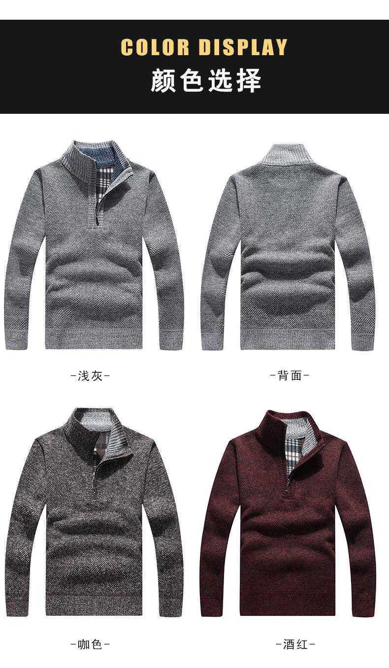 Suéter de hombre otoño e invierno con forro polar grueso con media cremallera suéter ropa exterior cuello alto suéter abrigo transfronterizo