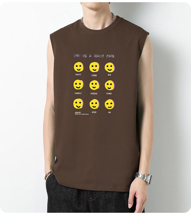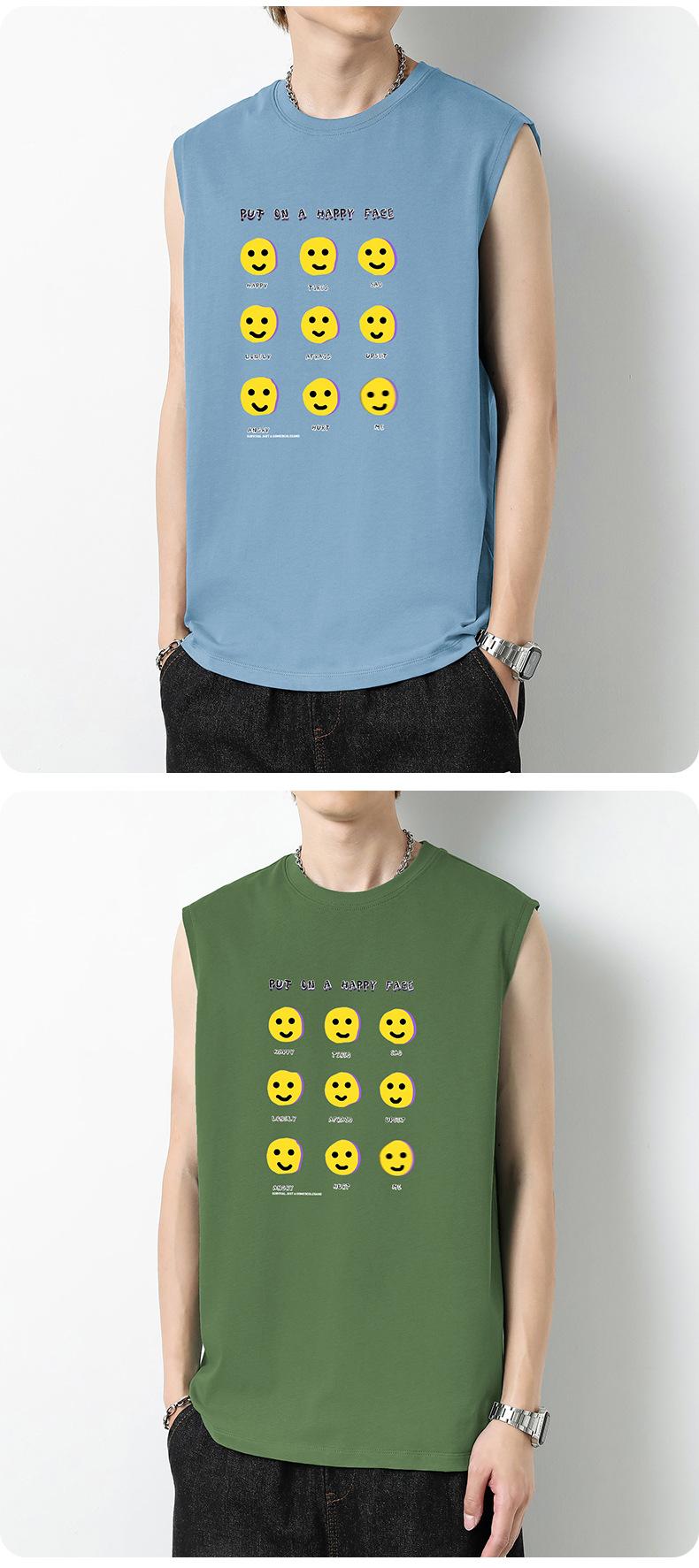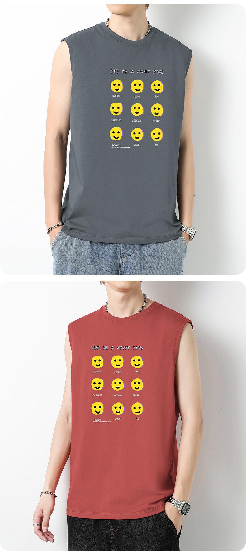 Chaleco de algodón para hombre, de verano, fino, con estampado emocional, deportivo, holgado, sin mangas, para fitness