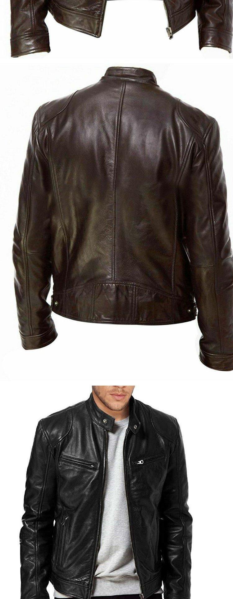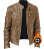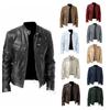 Chaqueta de cuero fina con cuello vertical para caballero de negocios de invierno, cálida, con cremallera y bolsillo decorativo de cuero sintético, P55
