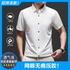 Camisa de Manga Corta de Seda Elástica Nueva 2025 para Hombre, Color Sólido Sin Planchado, Transpirable, Casual, Slim, para Negocios