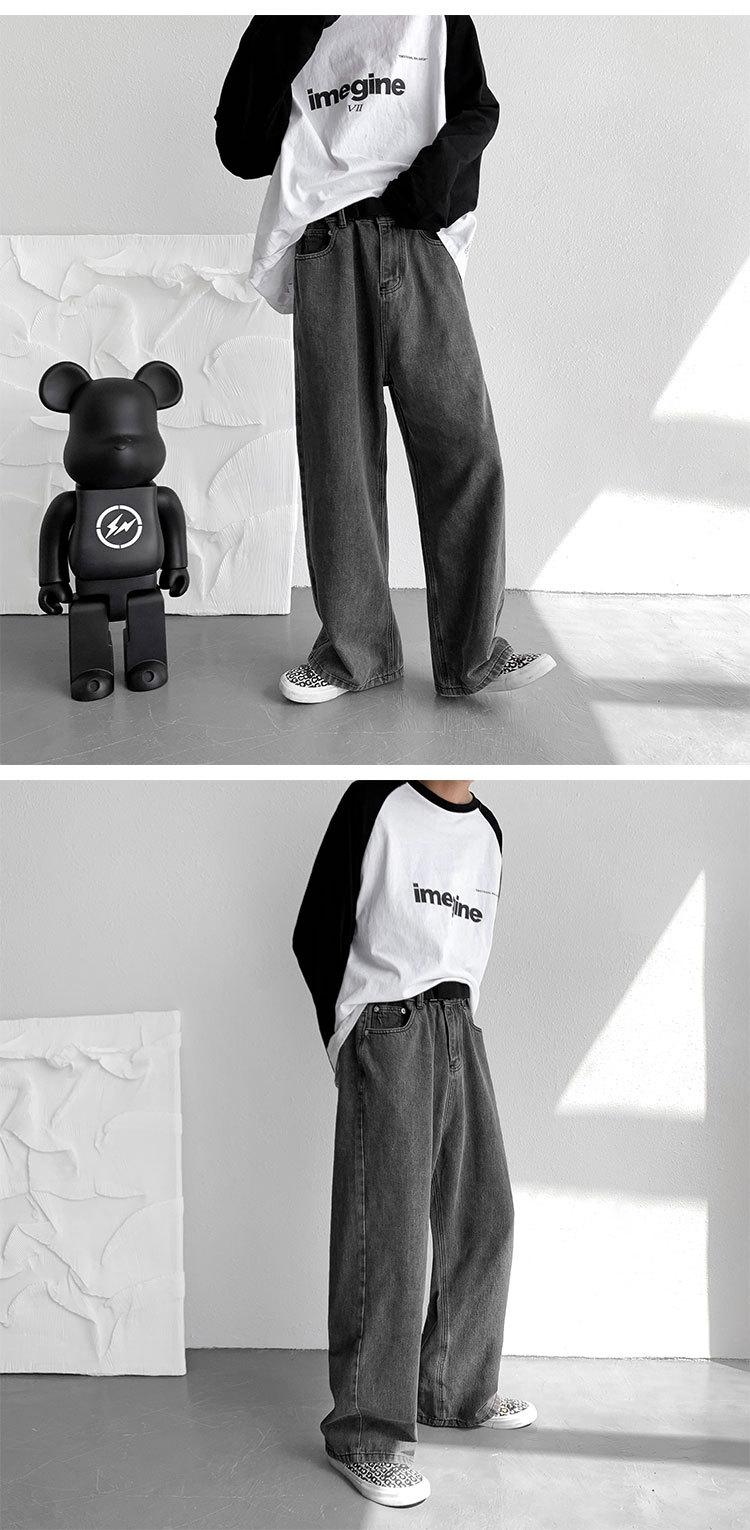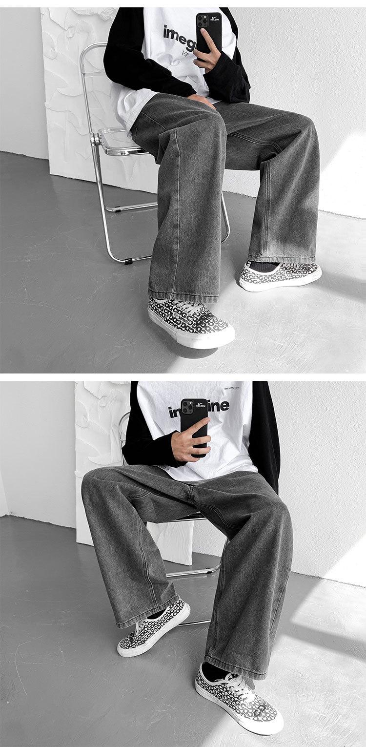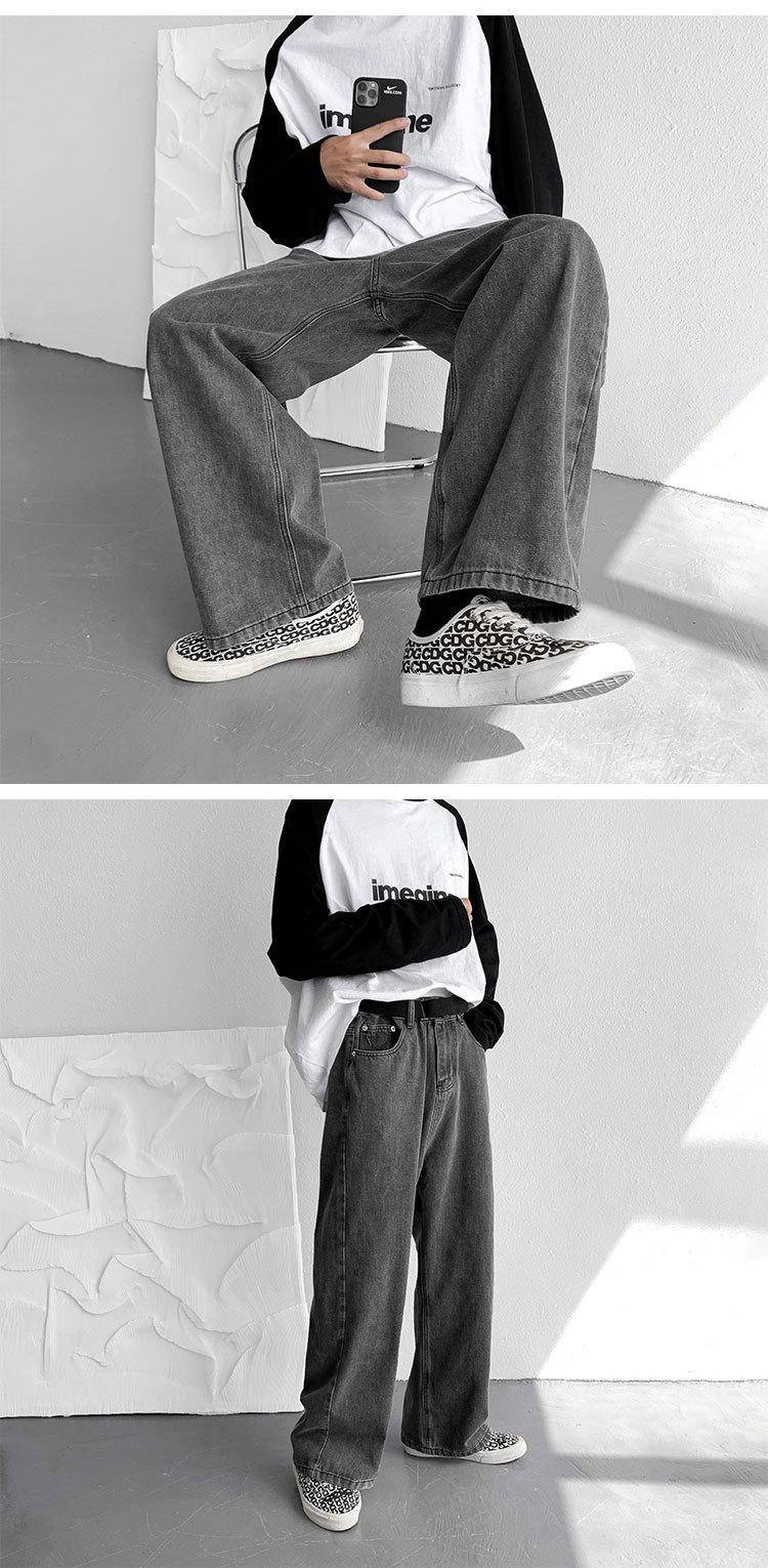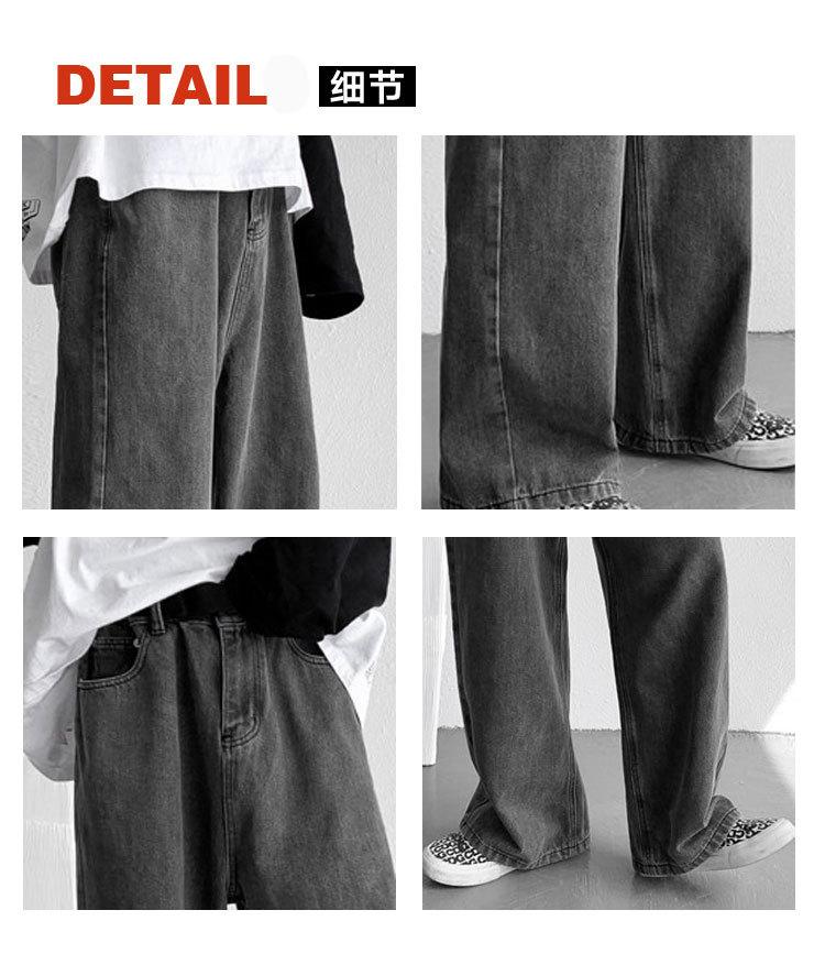Pantalones vaqueros rectos para hombre, holgados, de pierna ancha, estilo retro coreano, de Hong Kong, informales.