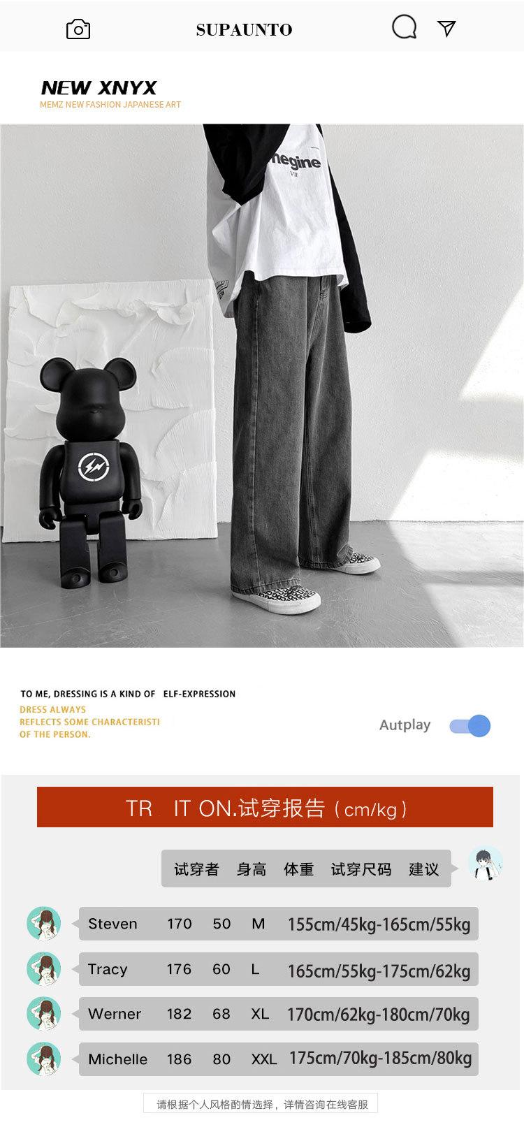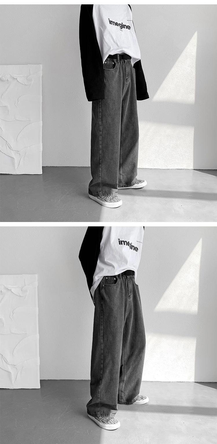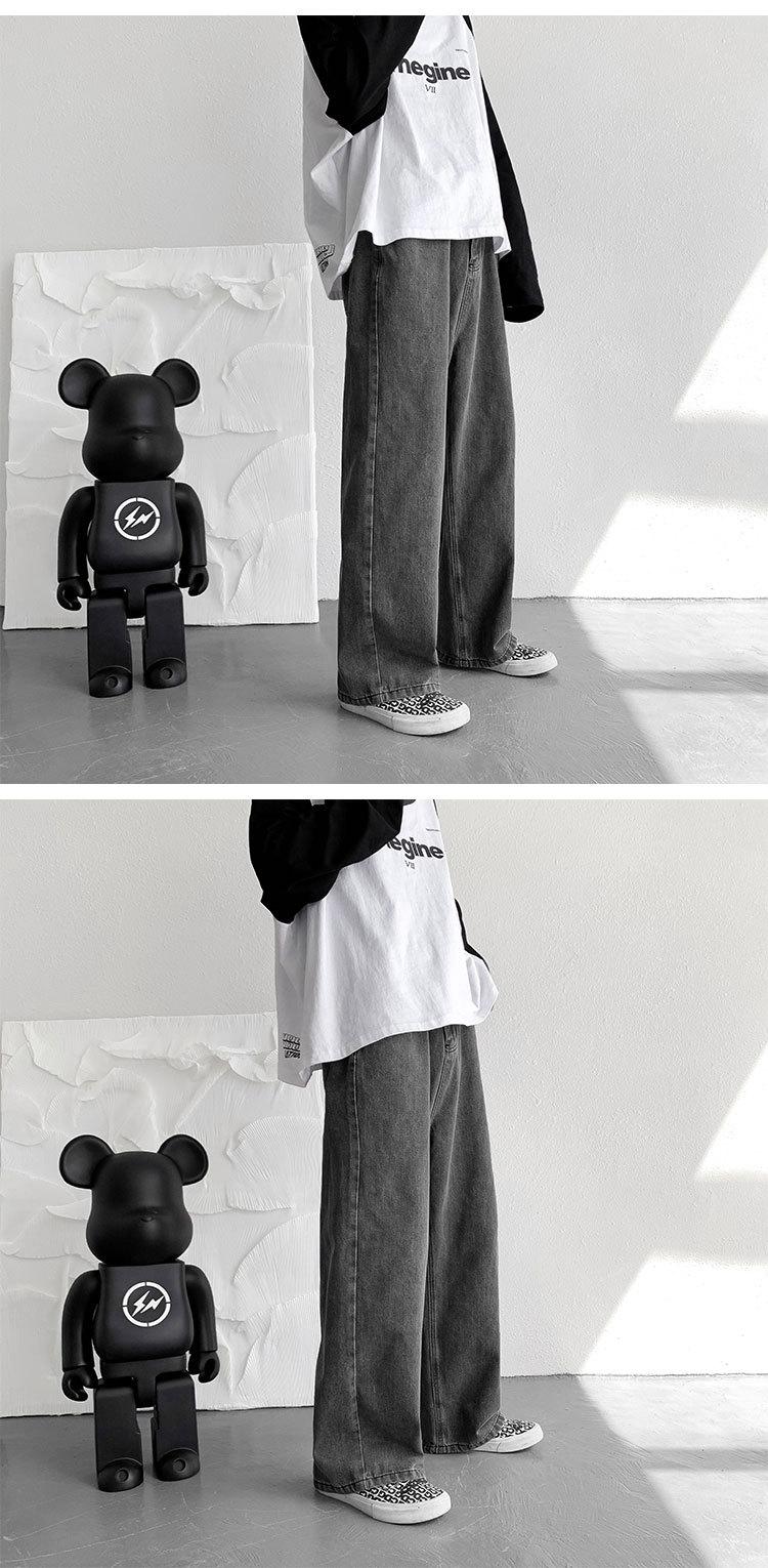 Pantalones vaqueros rectos para hombre, holgados, de pierna ancha, estilo retro coreano, de Hong Kong, informales.