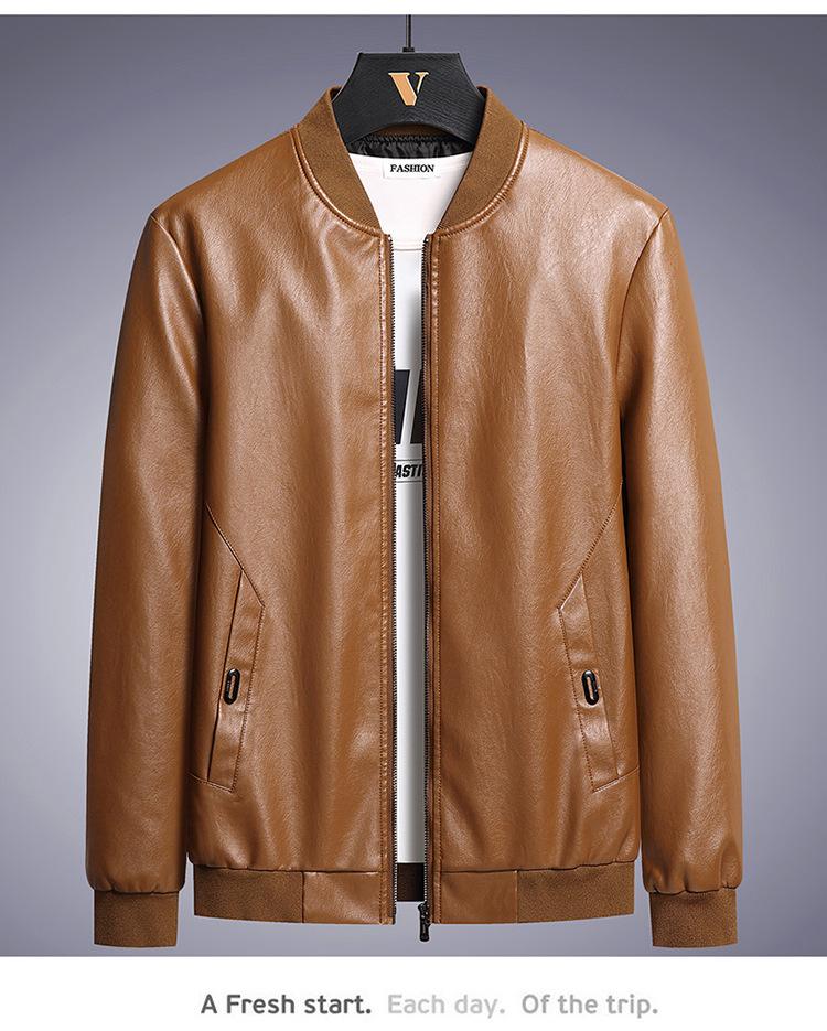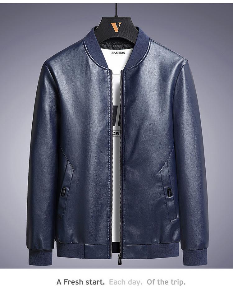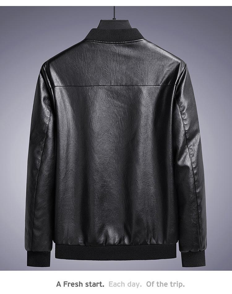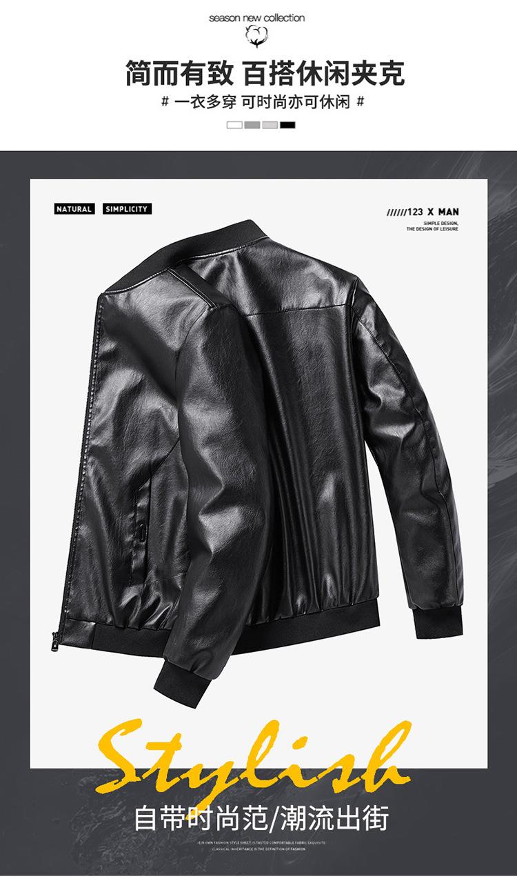 Chaqueta de cuero sintético para hombre, nueva chaqueta informal de moda de talla grande, con cuello corto, primavera y otoño de 2022
