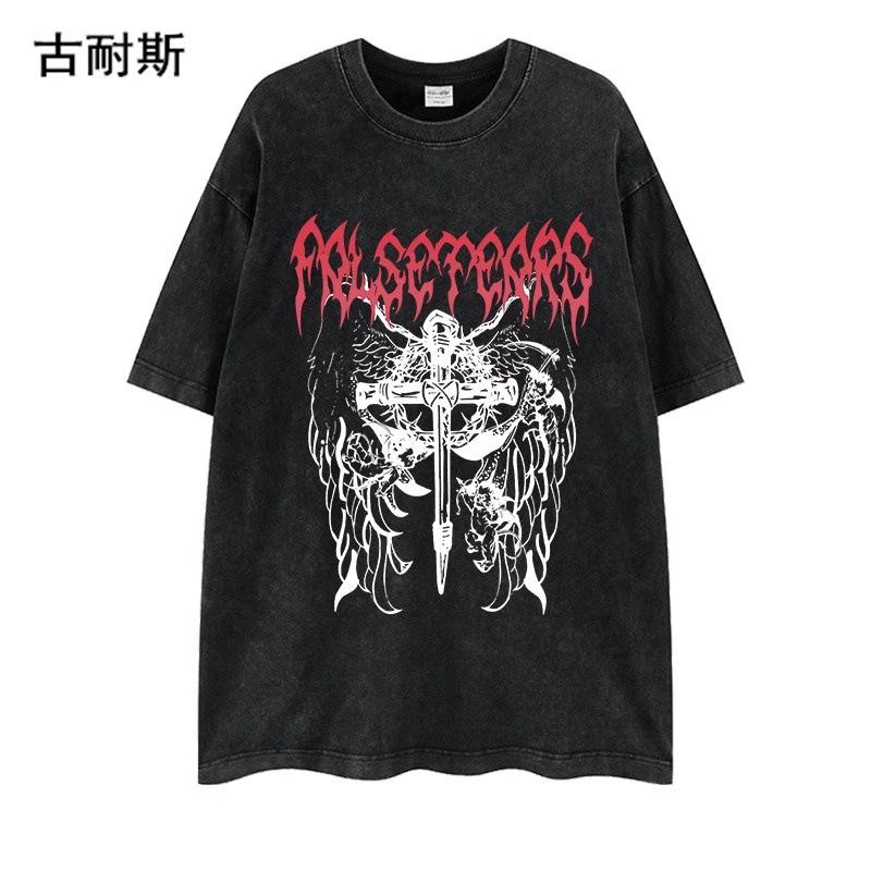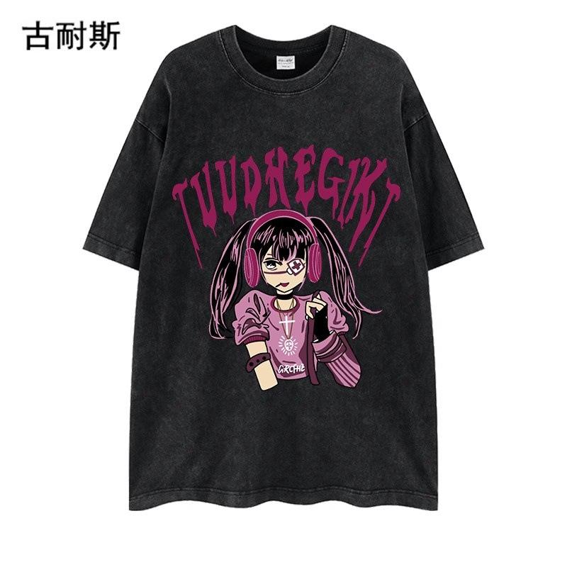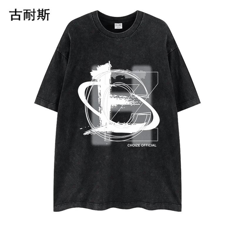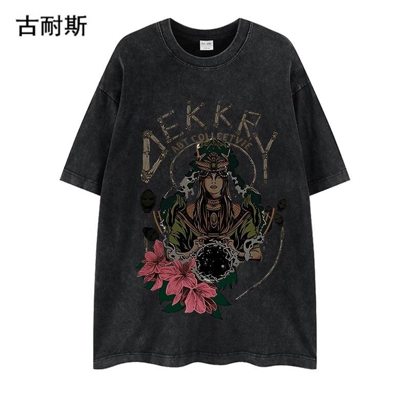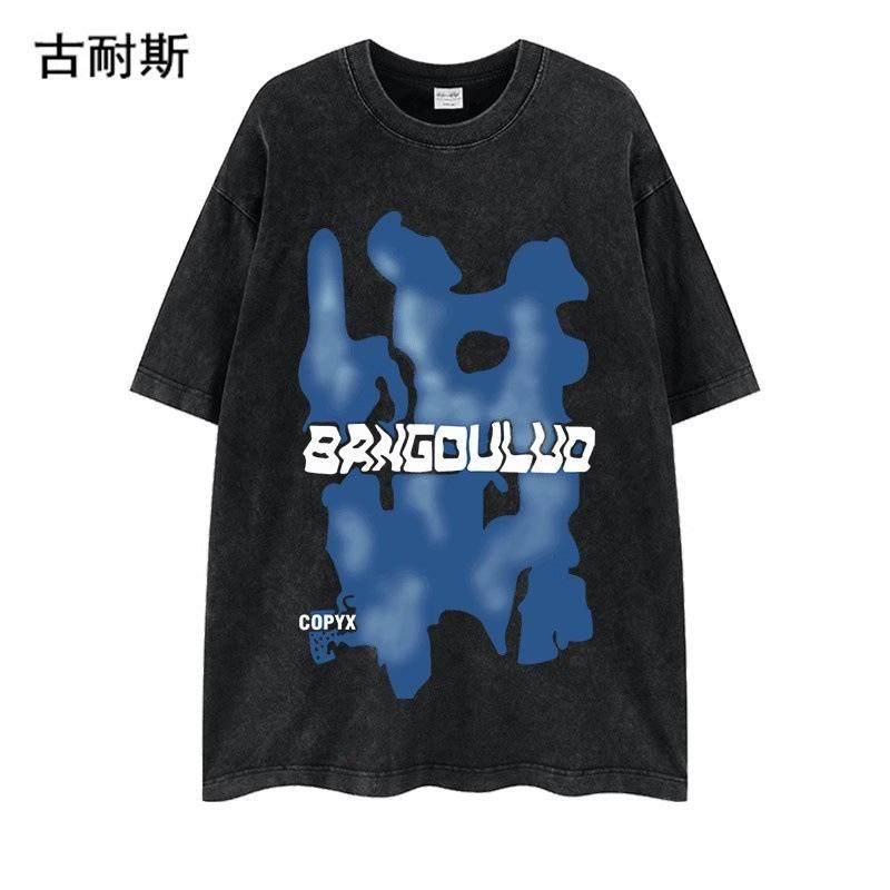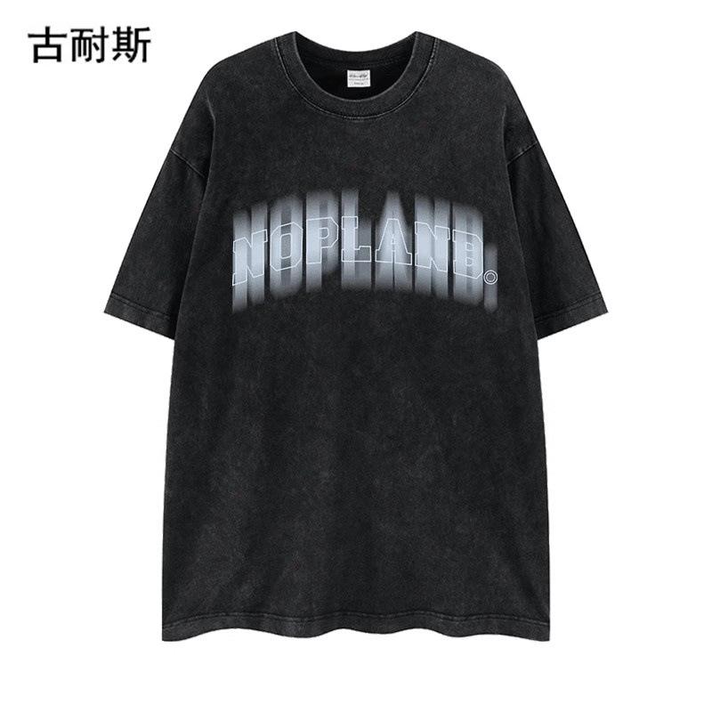 Venta al por mayor de estación independiente transfronteriza Marca de moda americana lavada vieja nicho pareja verano algodón suelta ins camiseta de manga corta