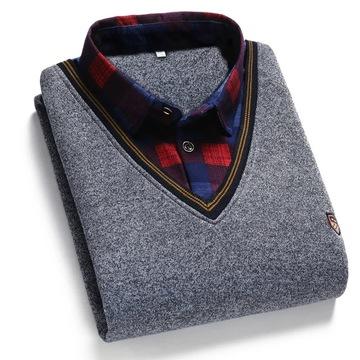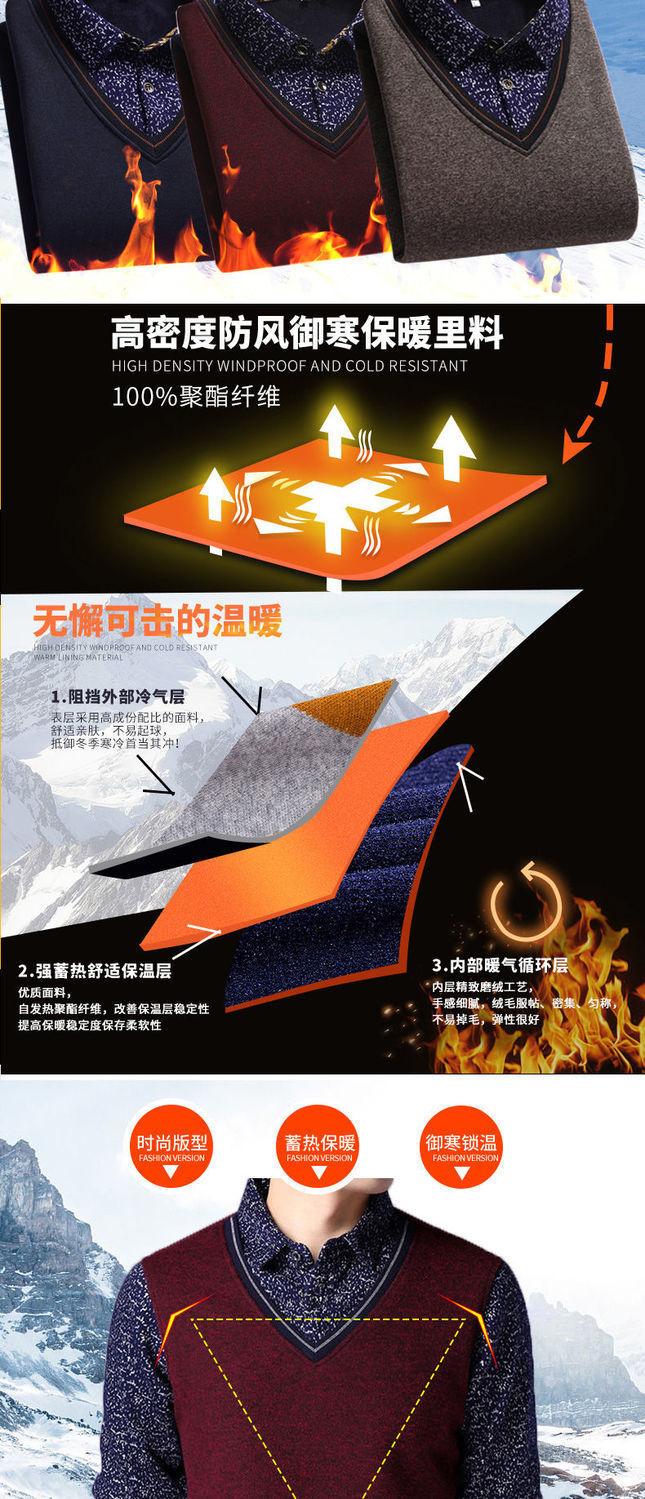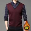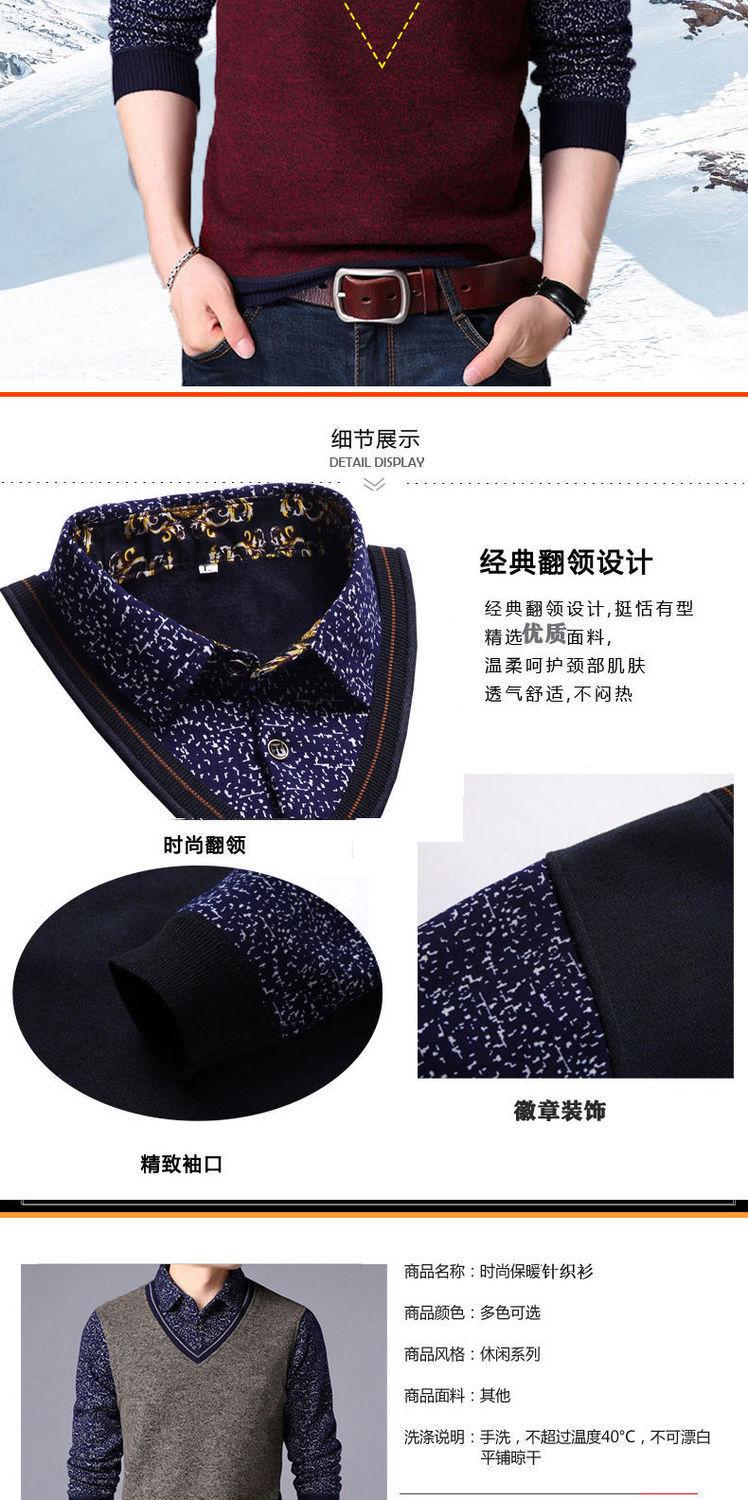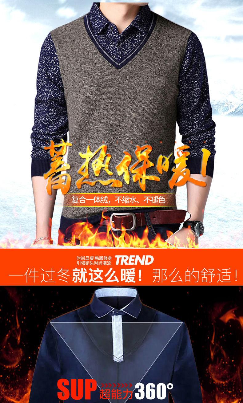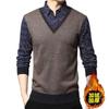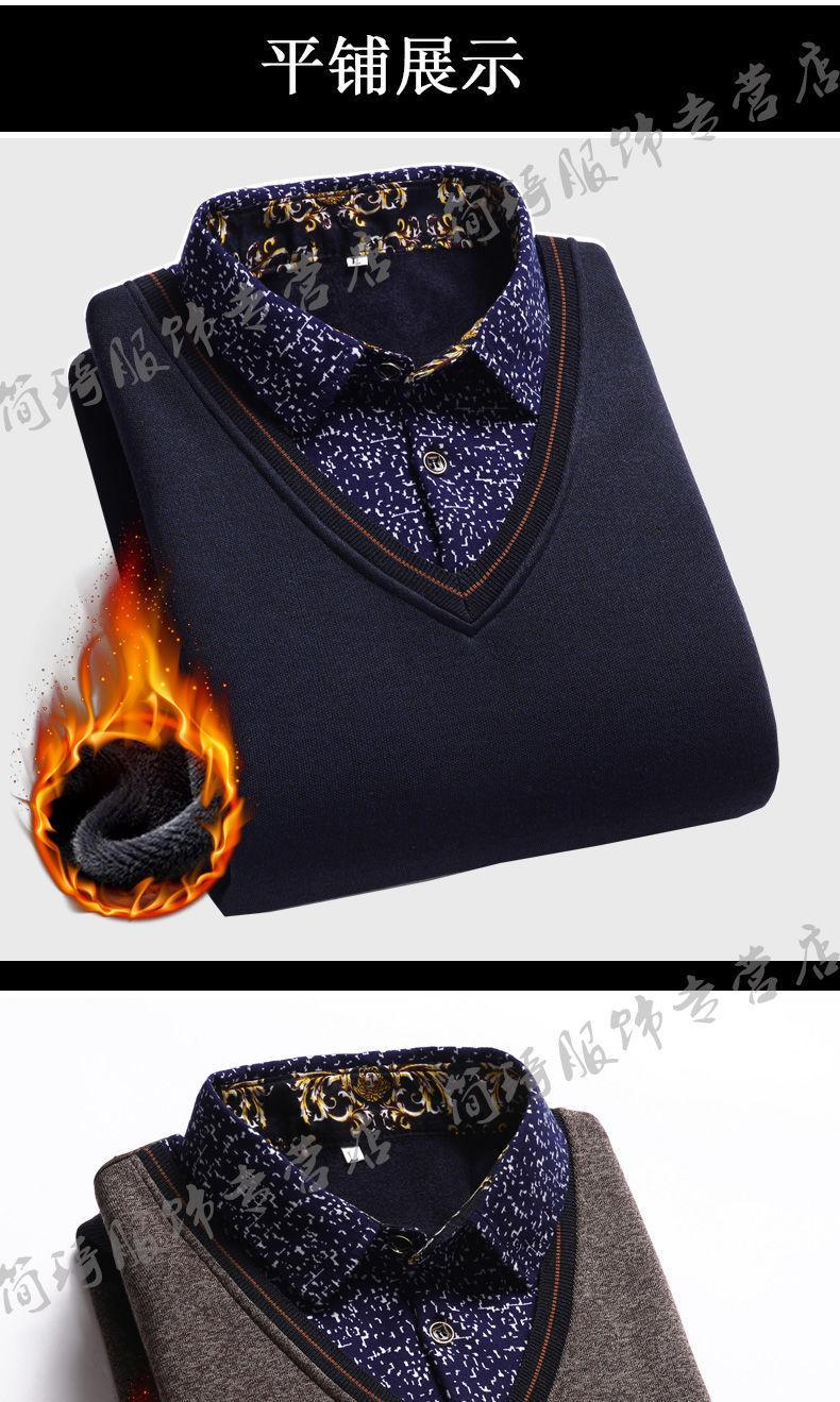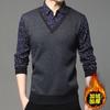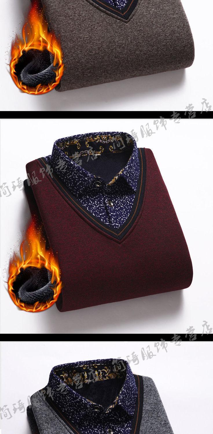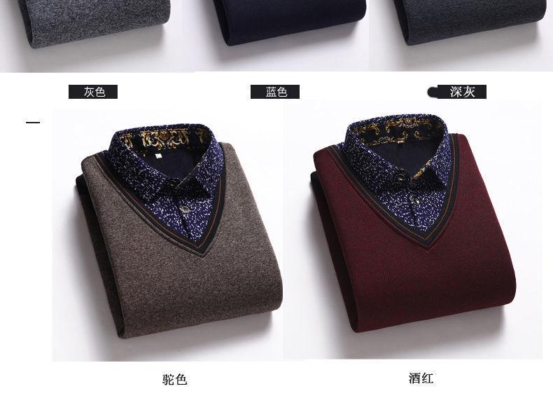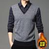 | Suéter de cuello camisero falso de dos piezas [regordete y grueso] para hombres de mediana edad y mayores, suéter de punto básico, ropa interior. |