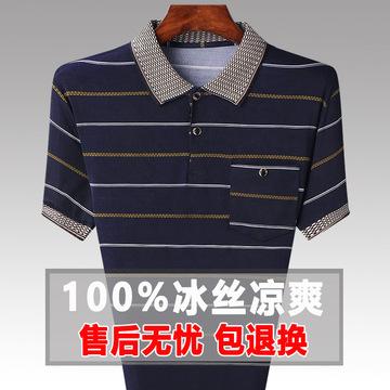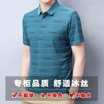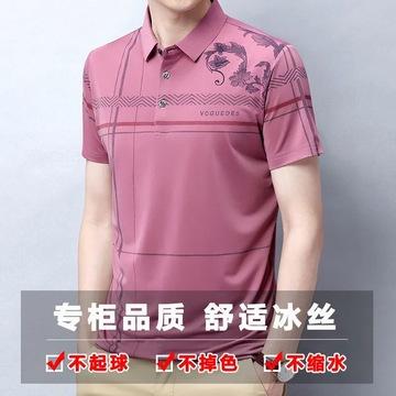 | Camisa POLO de verano para personas de mediana edad y mayores, camiseta de manga corta con solapa de seda helada para hombre, ropa holgada de talla grande para hombre, camiseta de media manga |