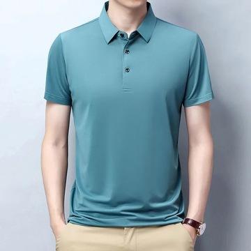 | Camiseta de manga corta para hombre de mediana edad y mayor, 2021, con solapa de seda helada, holgada, estilo informal de negocios, tipo polo |