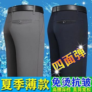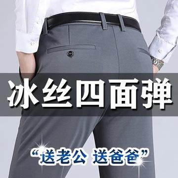 | Pantalones casuales de primavera para hombre, pantalones de estilo primavera y otoño, pantalones holgados y rectos para hombre de mediana edad, pantalones largos de negocios de seda de hielo de verano para hombre |