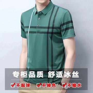 | Camisa polo de manga corta para hombre de mediana edad y mayor, de primavera y verano de 2021, nueva camiseta de papá de seda helada con solapa. |