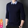 | Suéter de cuello camisero de dos piezas falso para hombre, nuevo, de primavera 2021, suéter de punto básico para hombres de mediana edad y mayores |
