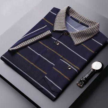 | Camiseta de manga corta de verano nueva para hombres de mediana edad y mayores con camisa POLO de media manga holgada informal a rayas, camiseta para hombre, atuendo de papá |