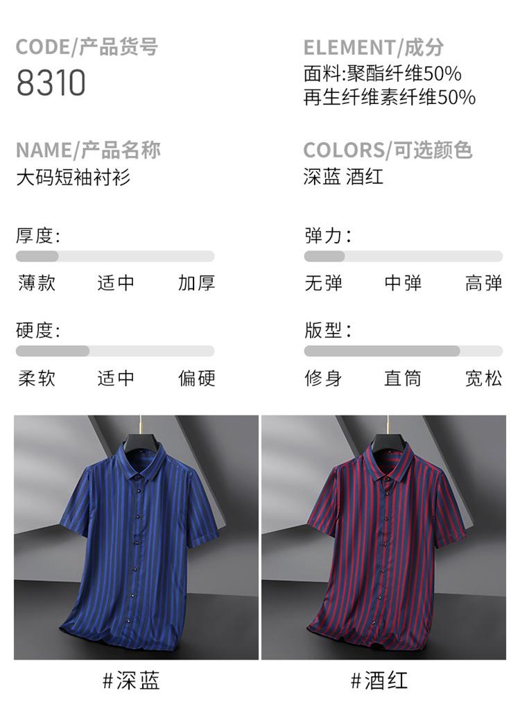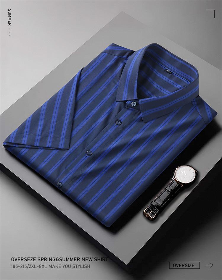 Camisa de Verano Nueva a Rayas de Manga Corta para Gordo Talla Grande Extra Grande Delgada