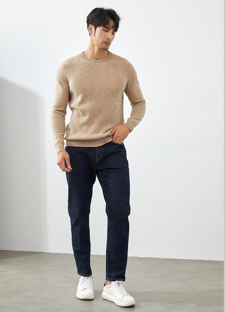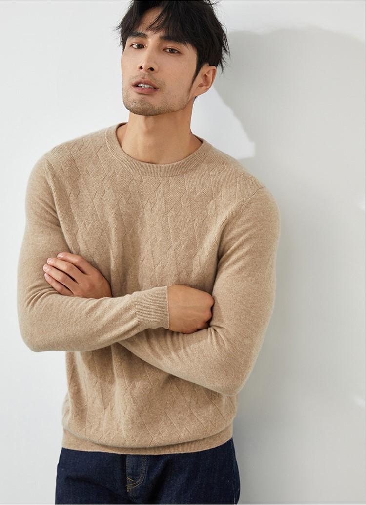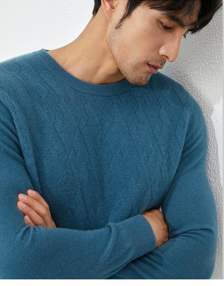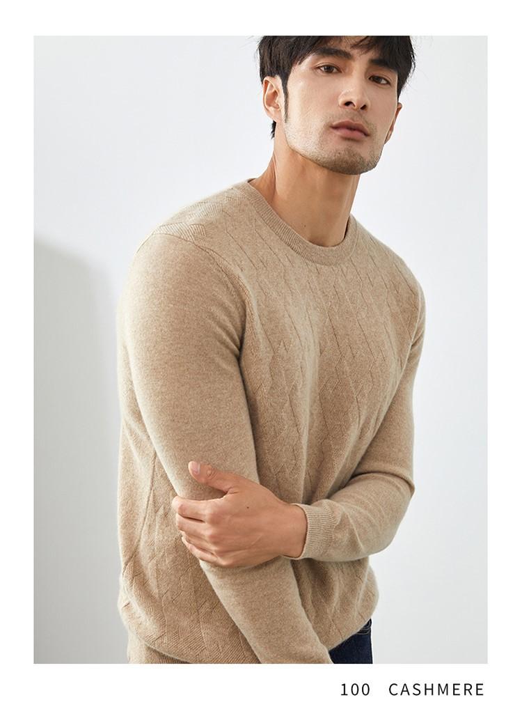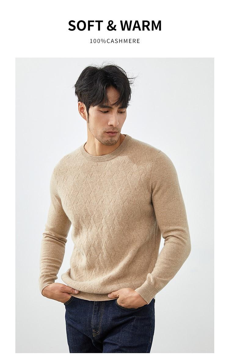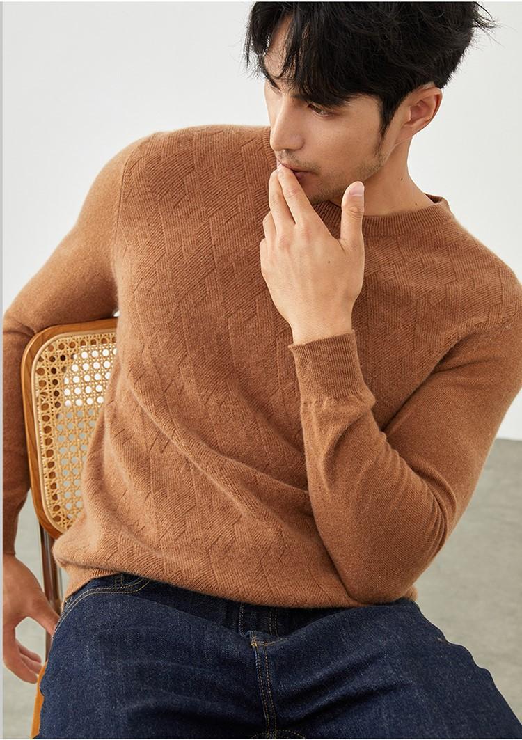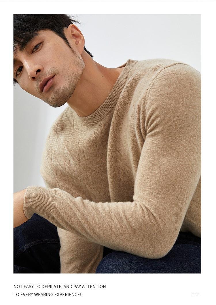 Suéter de cachemira para hombre, nuevo suéter de cuello redondo, suelto, grueso, de color sólido, informal, de negocios, de punto, para otoño e invierno.