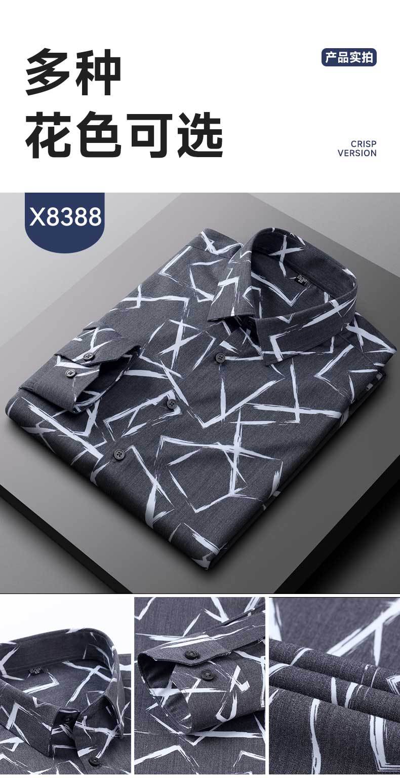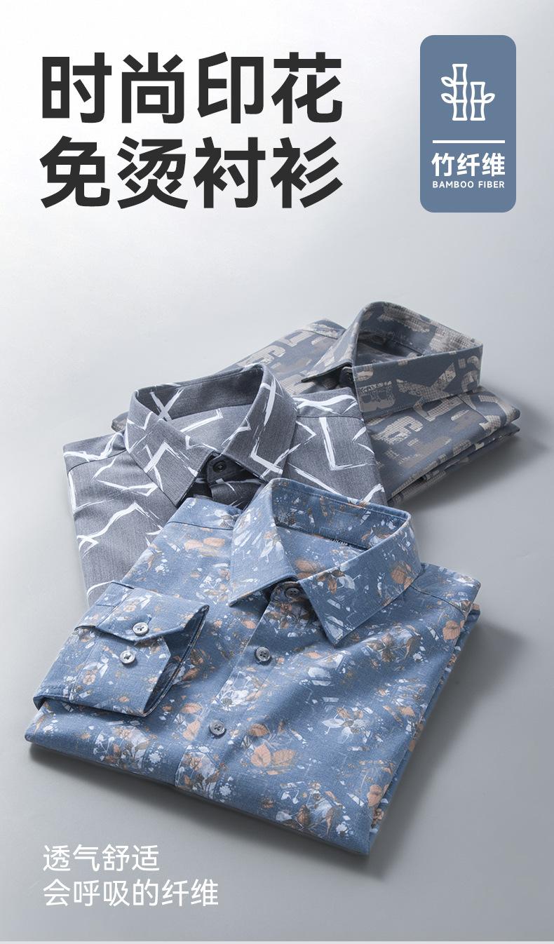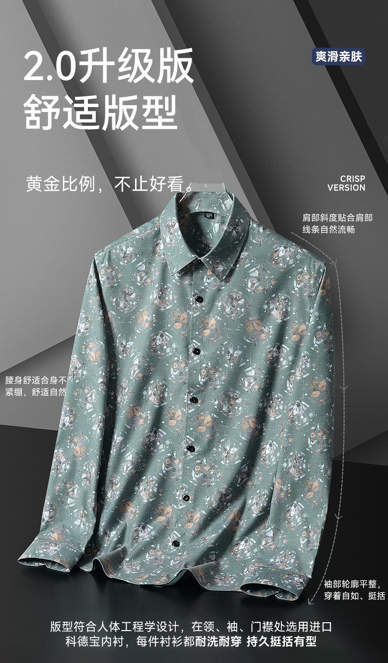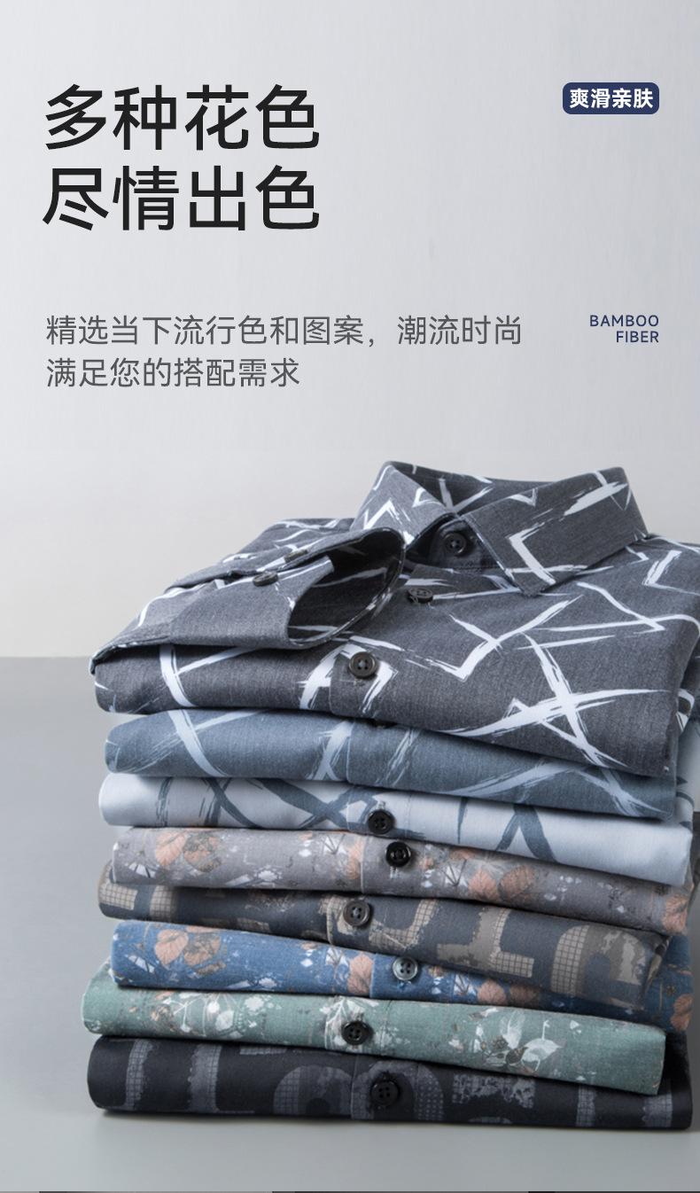 Camisa de hombre de alta gama de fibra de bambú nueva de otoño, camisa de manga larga con estampado informal de negocios sin planchado para hombre, venta al por mayor