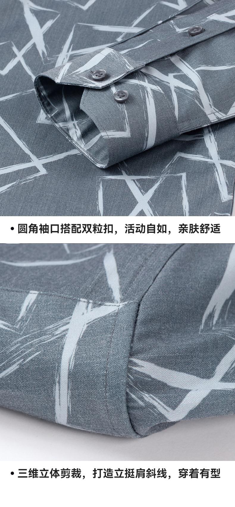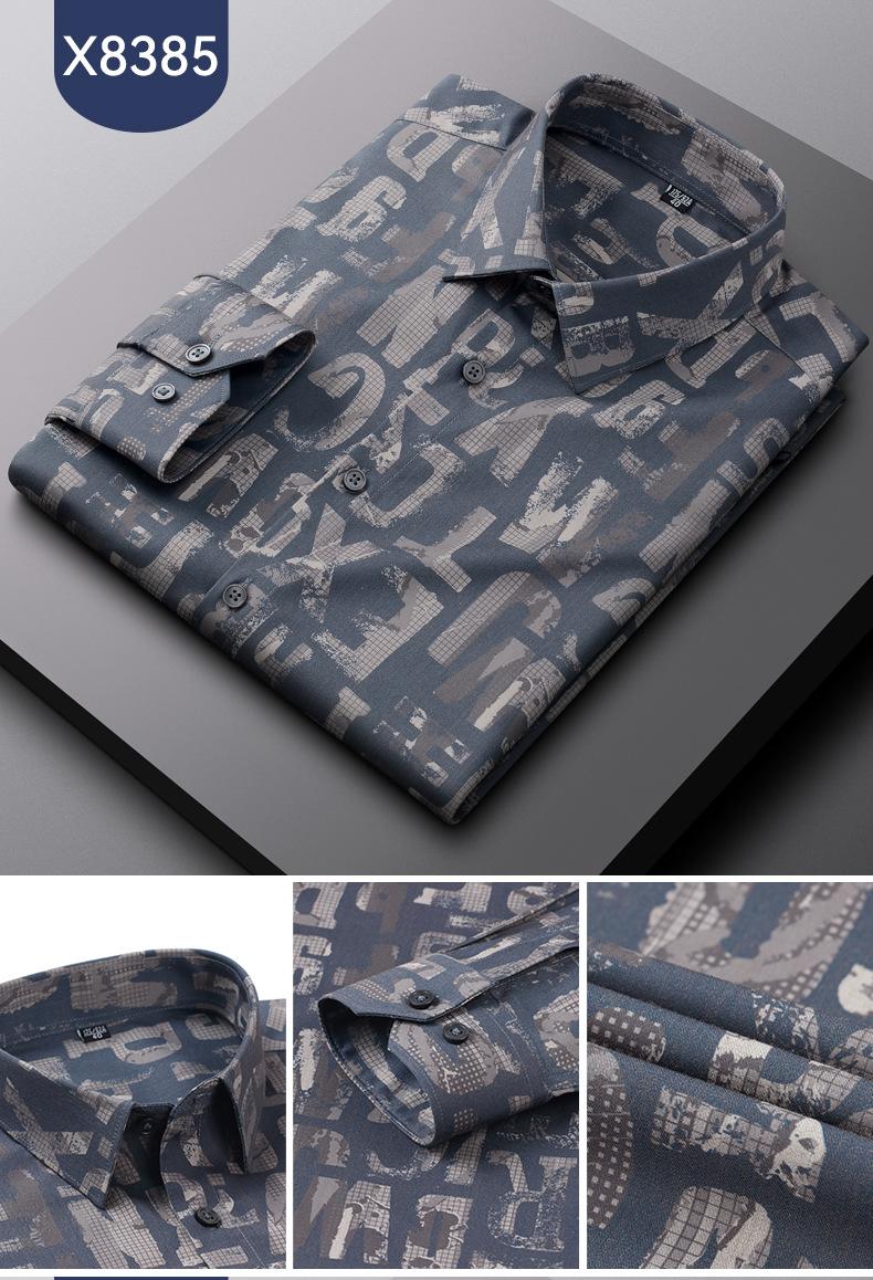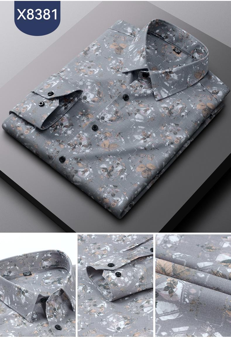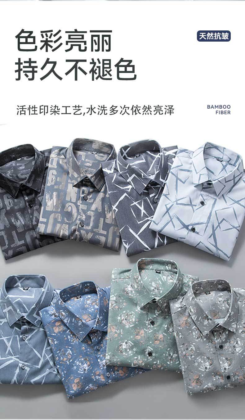 Camisa de hombre de alta gama de fibra de bambú nueva de otoño, camisa de manga larga con estampado informal de negocios sin planchado para hombre, venta al por mayor