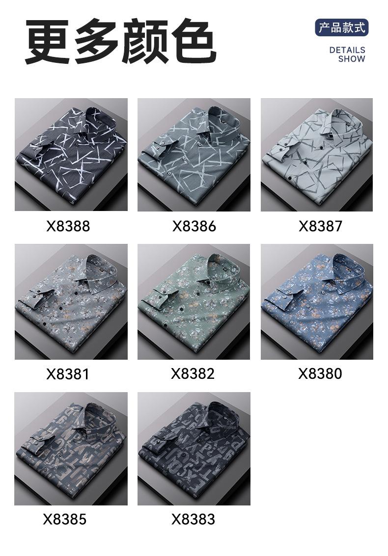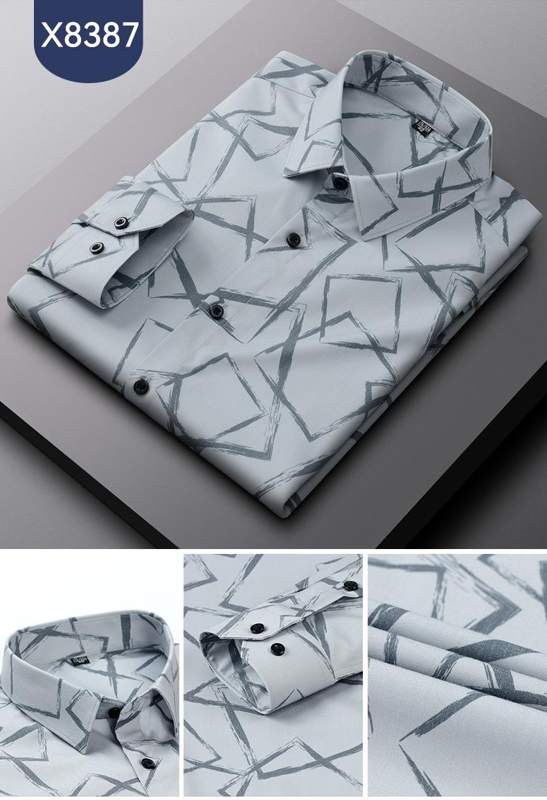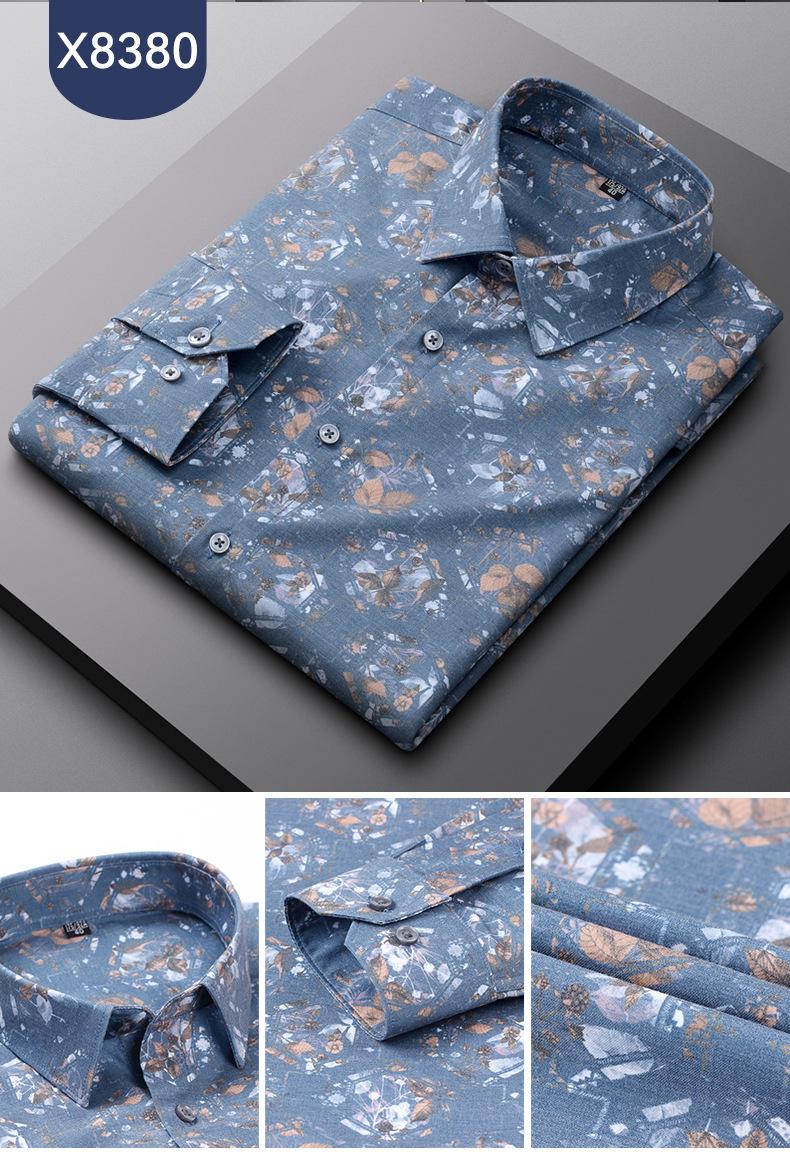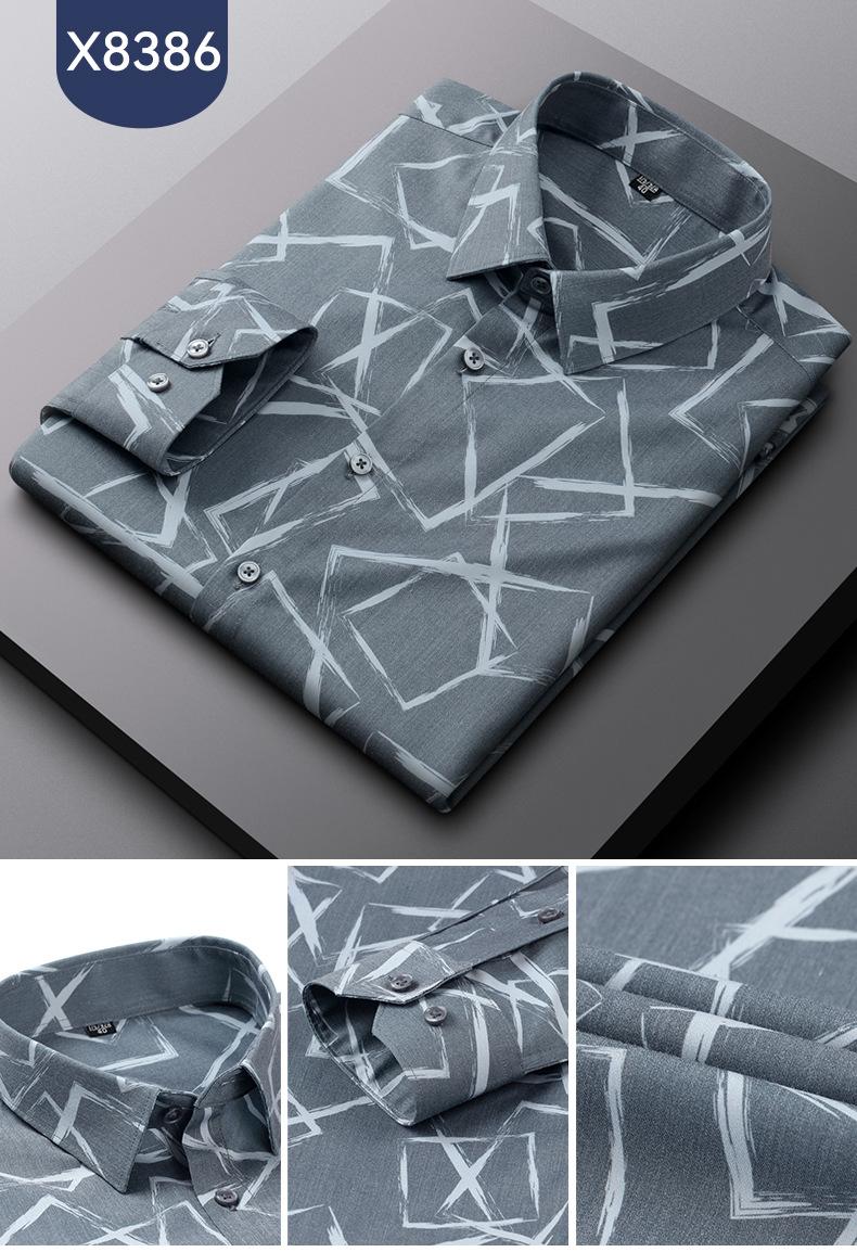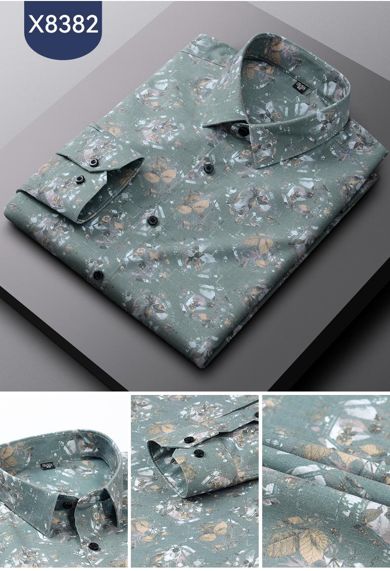 Camisa de hombre de alta gama de fibra de bambú nueva de otoño, camisa de manga larga con estampado informal de negocios sin planchado para hombre, venta al por mayor