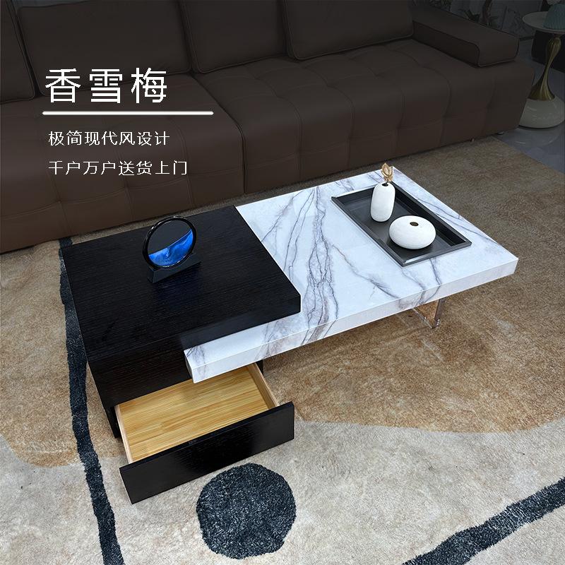 Mesa de Centro Minimalista Italiana de Lujo Ligero de Alta Gama de Pizarra Moderna Simple para el Hogar Sala de Estar de Apartamento Pequeño Mesa de Centro de Madera Maciza de Alta Gama