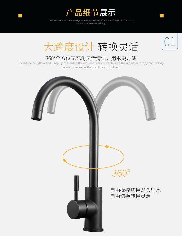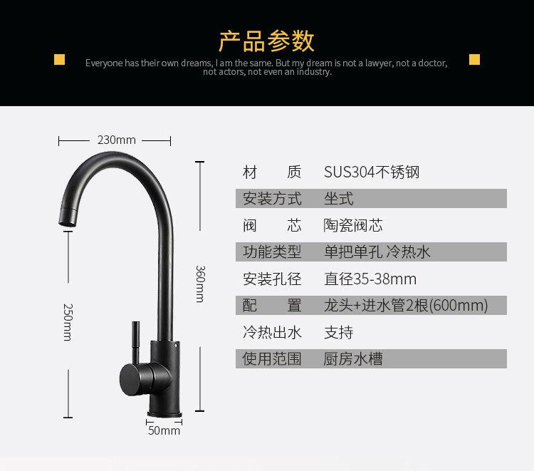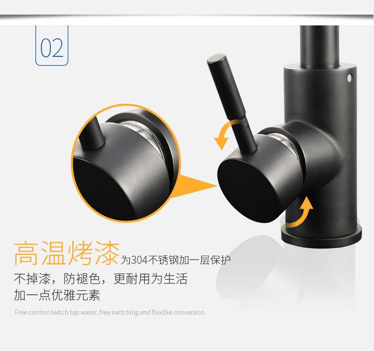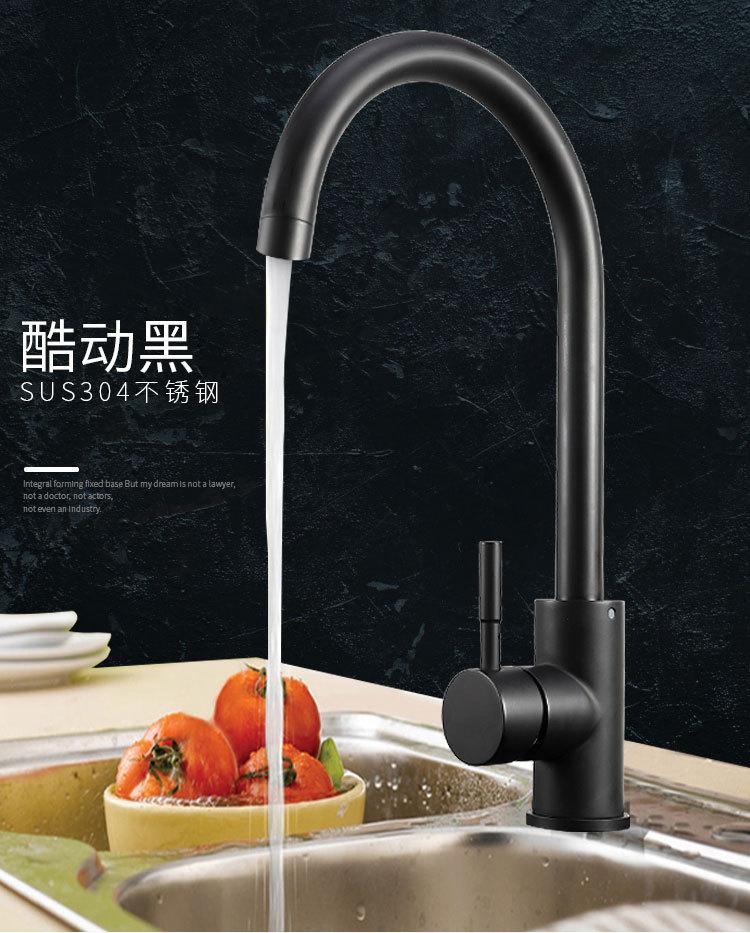 Grifo de cocina de acero inoxidable 304, grifo negro para fregadero de cocina doméstico, grifo de agua fría y caliente.