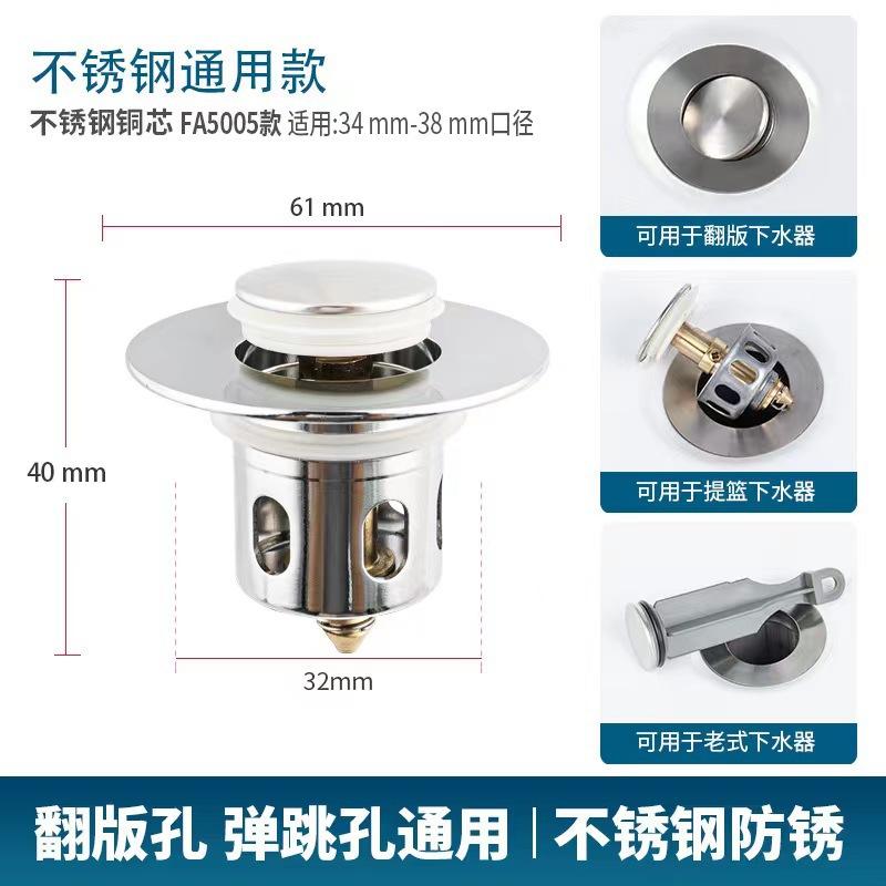 Lavabo de baño de ferretería para el hogar Baño Cocina Lavandería Piscina Lavabo de acero inoxidable Núcleo desodorante de agua Tapón de agua