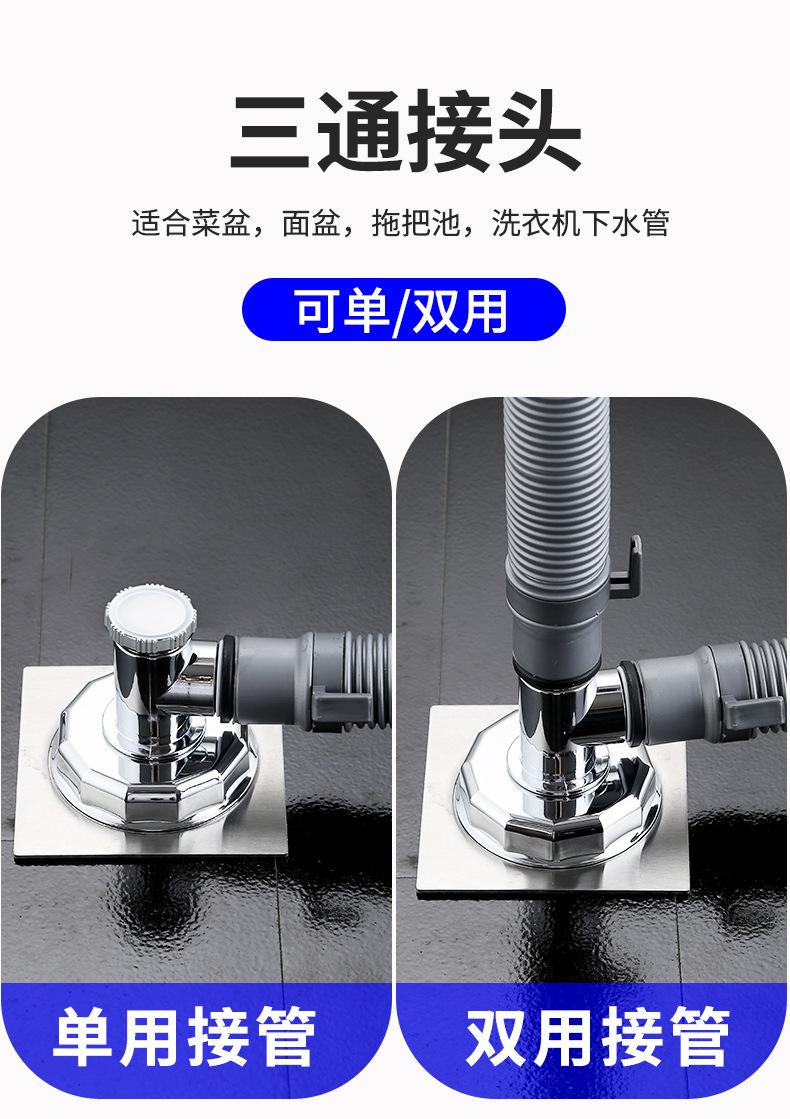 Three-way probe (for dual-purpose floor drain only), Black cup washer, Sus304 steel wire 50cm nut tube at both...