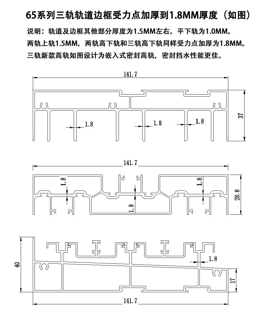 Heavy door leaf 68/100*50 wide door leaf 3.0 track 2.0 thick three track with yarn