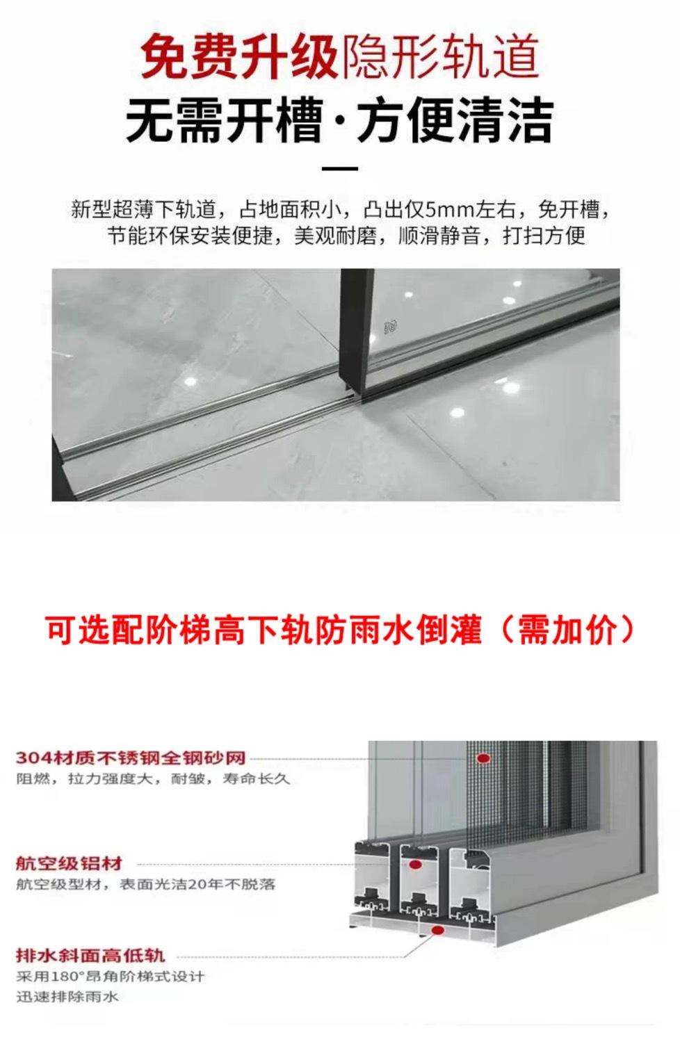 Puerta corredera resistente con sellado para balcón, elevación de grosor medio-estrecho, aislamiento acústico, puerta de entrada de vidrio hueco para sala de estar y cocina, puerta corredera de riel alto
