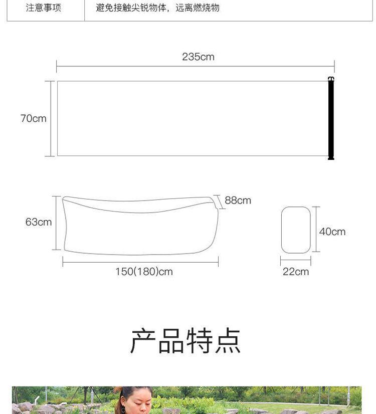 Sofá cama inflable plegable y grueso para festivales de música, ideal para celebridades de Internet, portátil, sin bombeo, para almuerzos al aire libre, con cojín de aire perezoso.