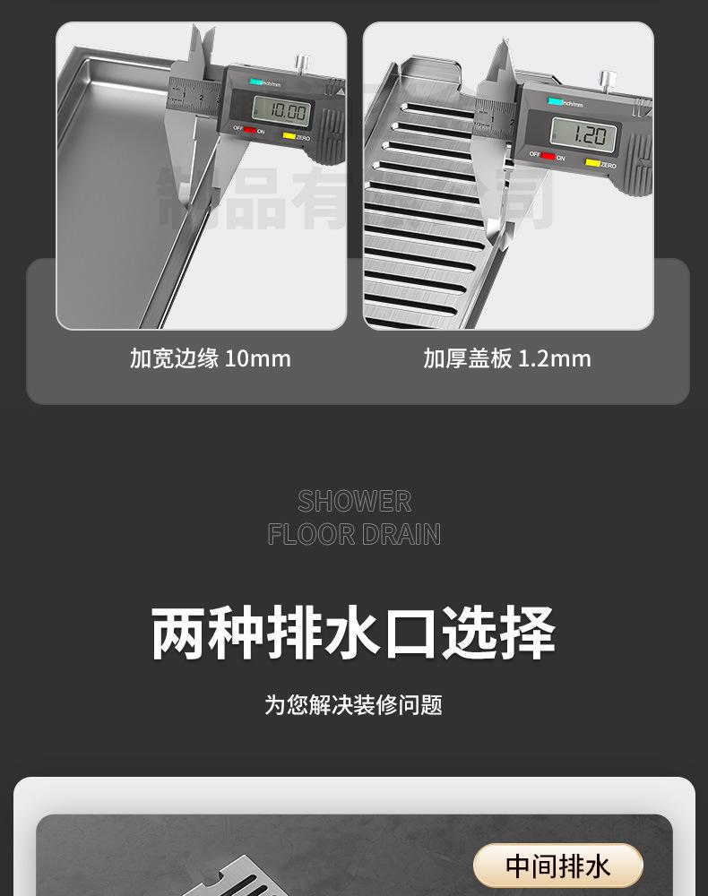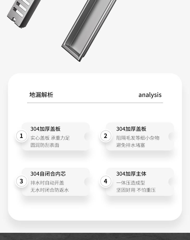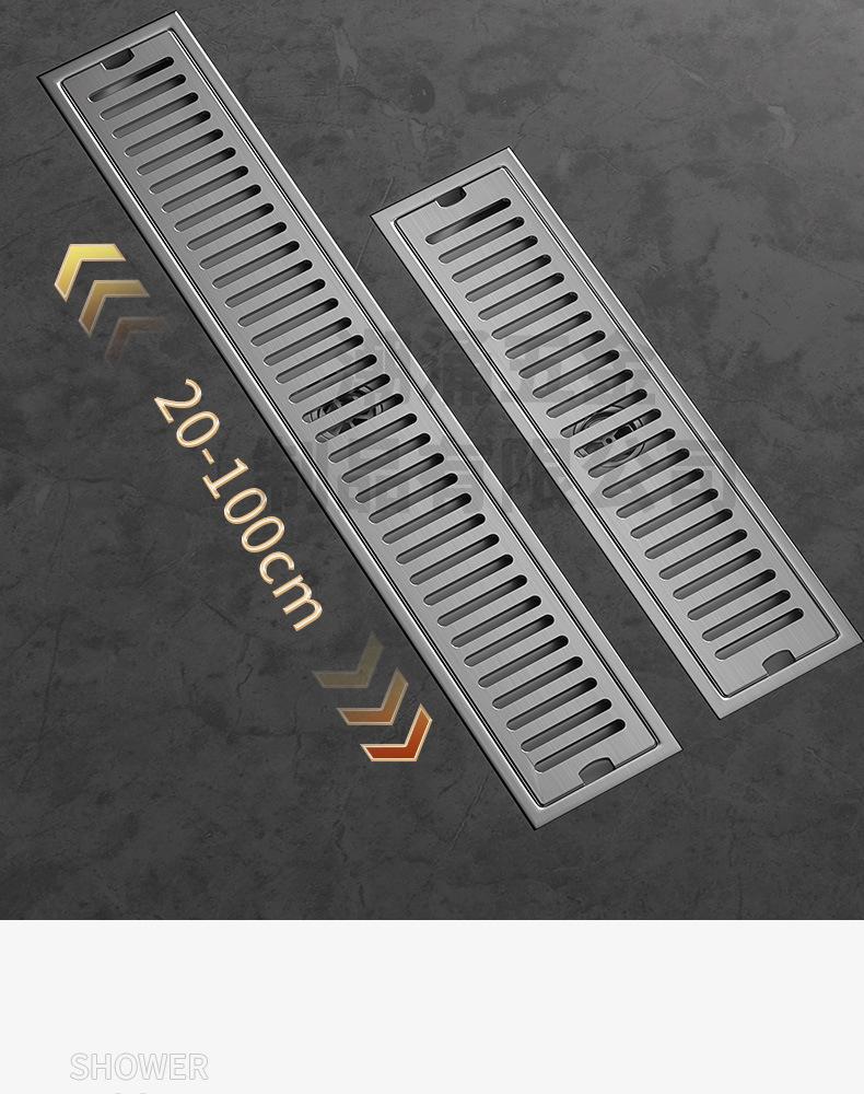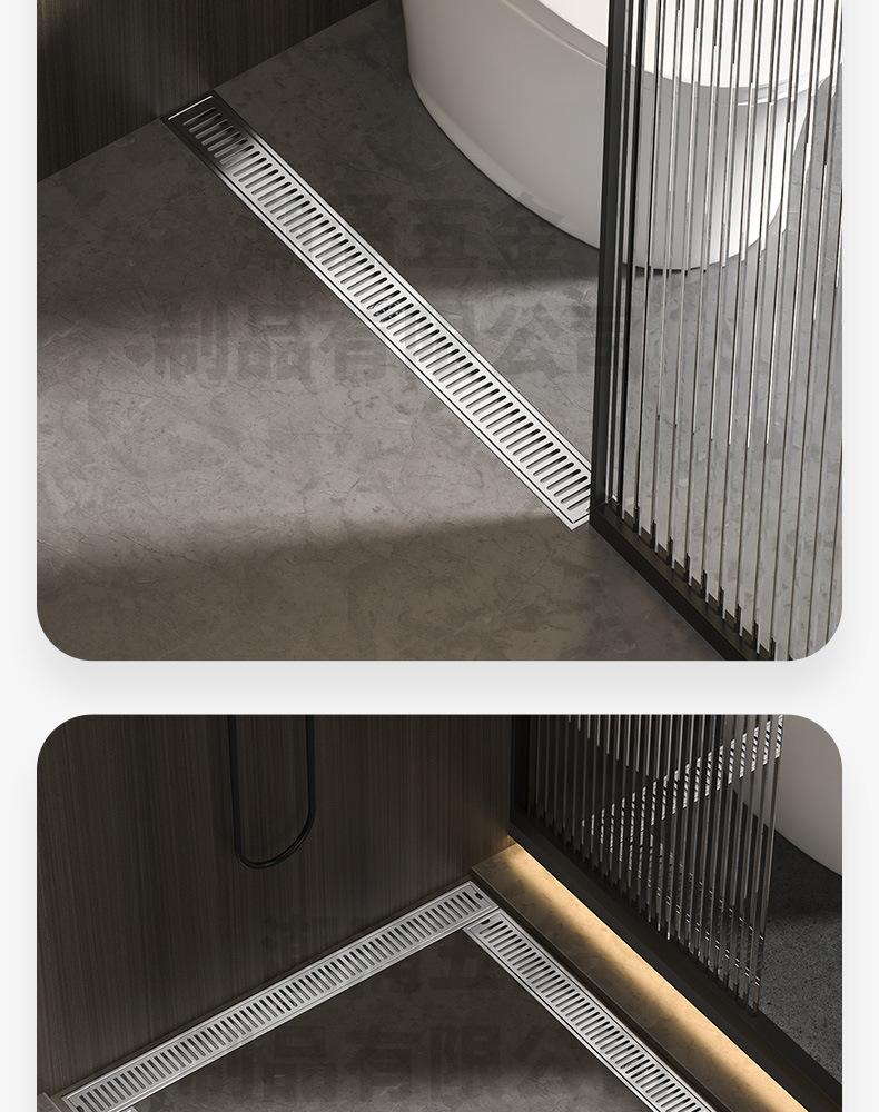 Desagüe de piso de inodoro engrosado de acero inoxidable 304, desagüe de piso rectangular para cuarto de ducha, desagüe de piso largo de ingeniería de gran desplazamiento