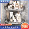 Estante de almacenamiento de baño de aluminio espacial, estante de almacenamiento de esquina triangular sin perforaciones para baño, lavabo para baño para colgar en la pared