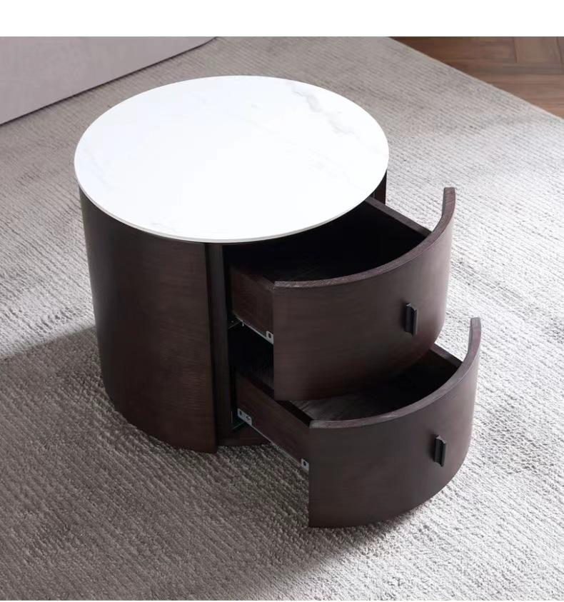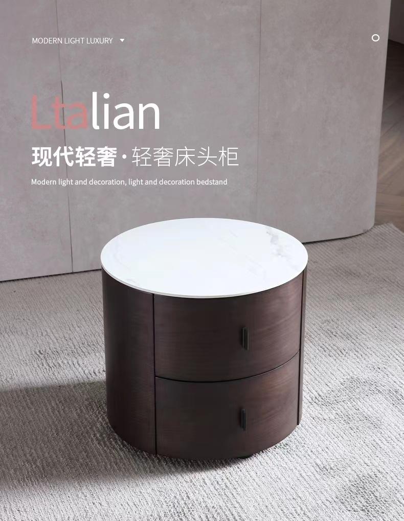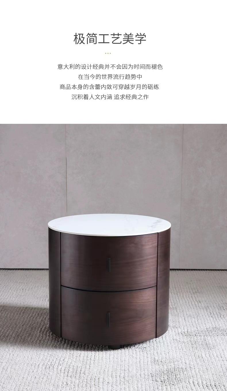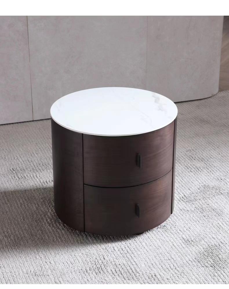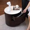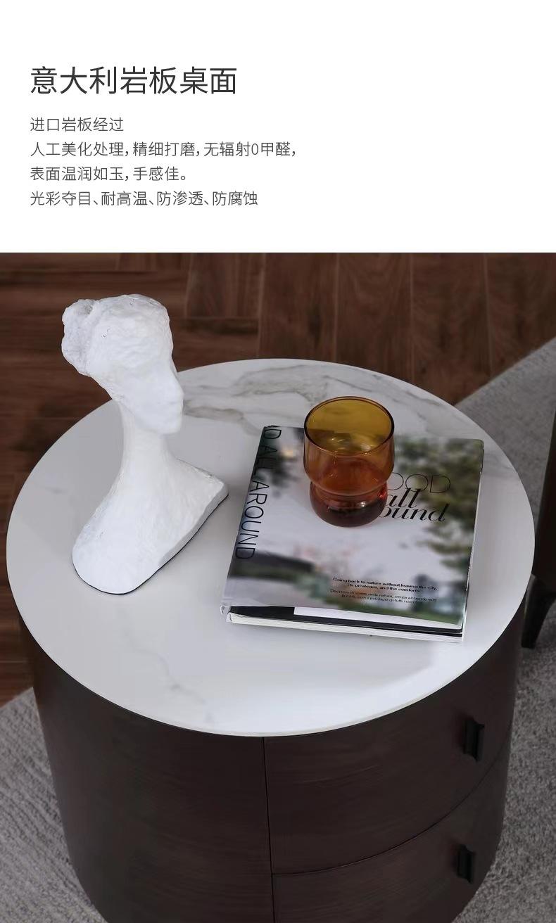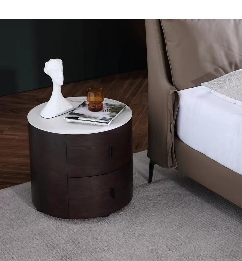 Mesita de noche redonda, ligera, de lujo, sencilla, moderna, de alta calidad, para dormitorio, armario de almacenamiento, mesa de noche de madera de alta gama con placa de roca