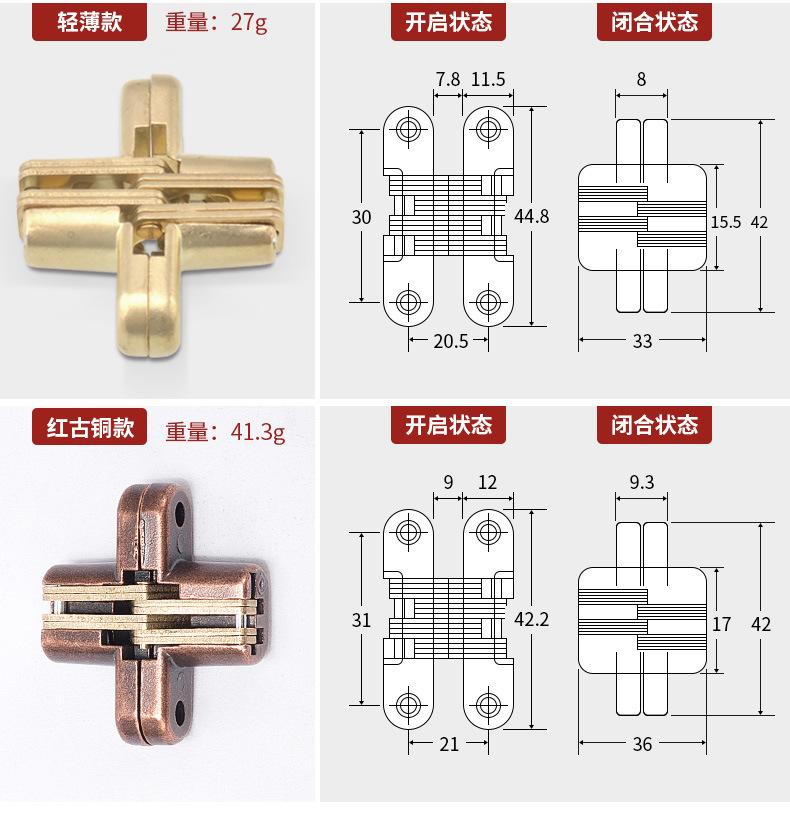 Herraje para muebles bisagra cruzada de aleación de zinc bisagra cruzada oculta para puerta de gabinete bisagra cruzada oculta para armario bisagra plegable oculta