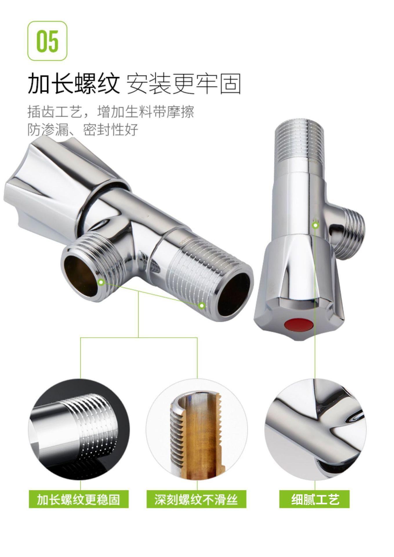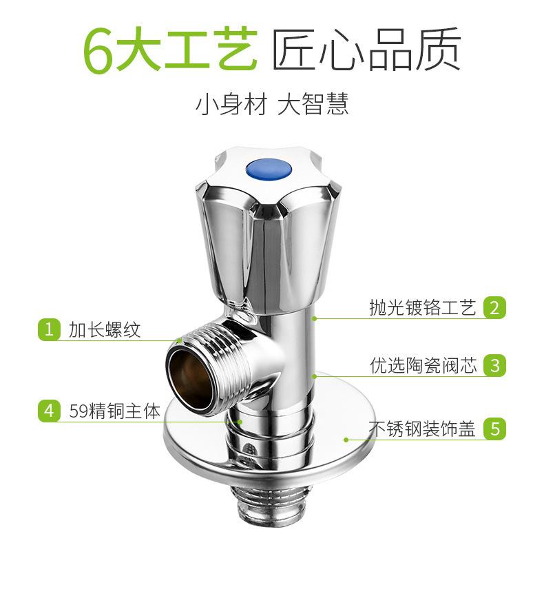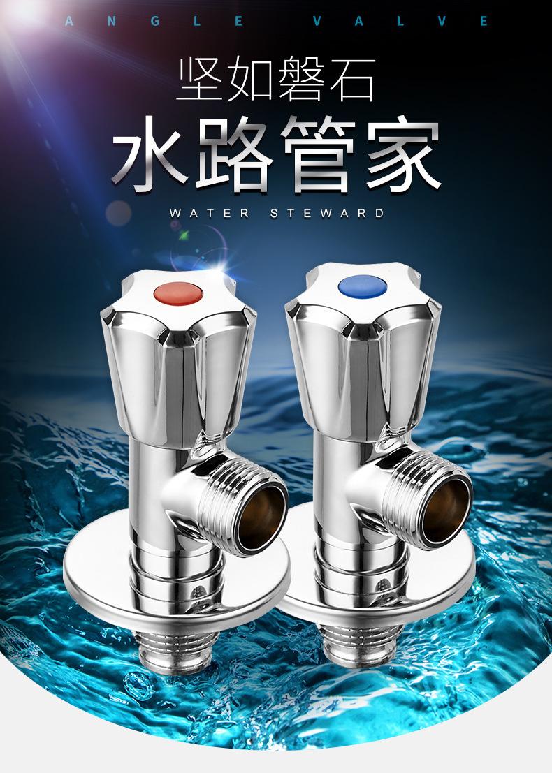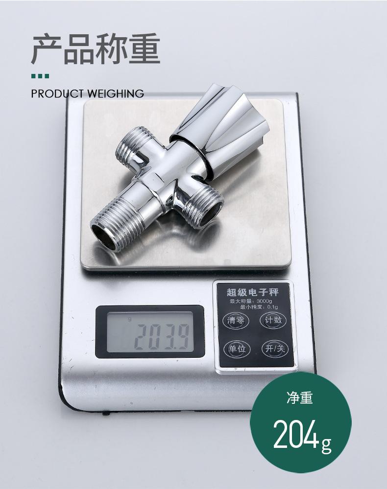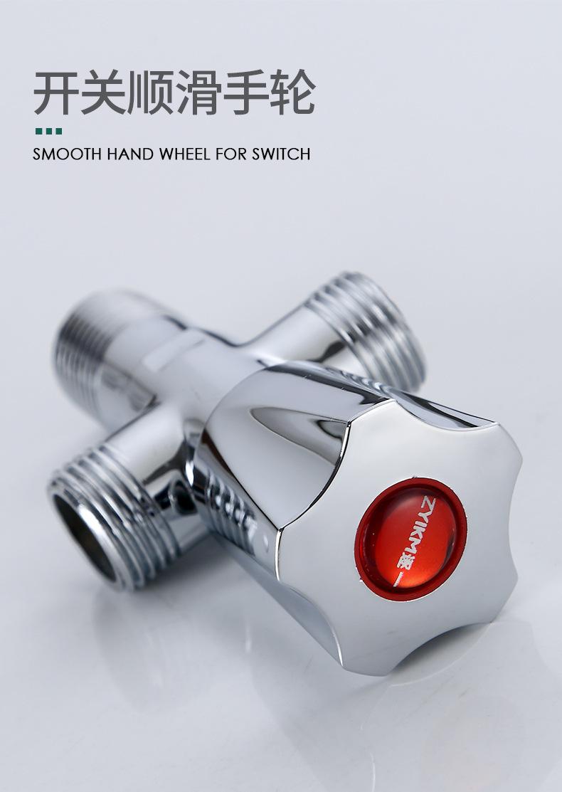 Válvula de tres vías de apertura rápida engrosada de latón, una entrada y dos salidas, válvula de doble salida de agua, válvula triangular multifunción para inodoro de cuatro puntos