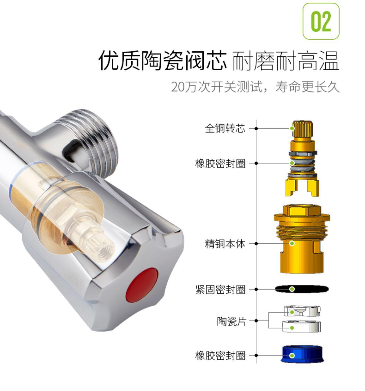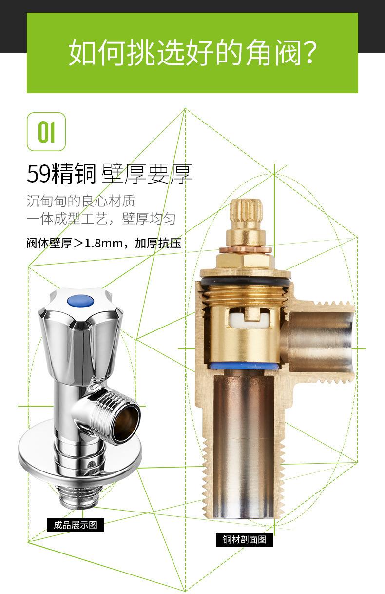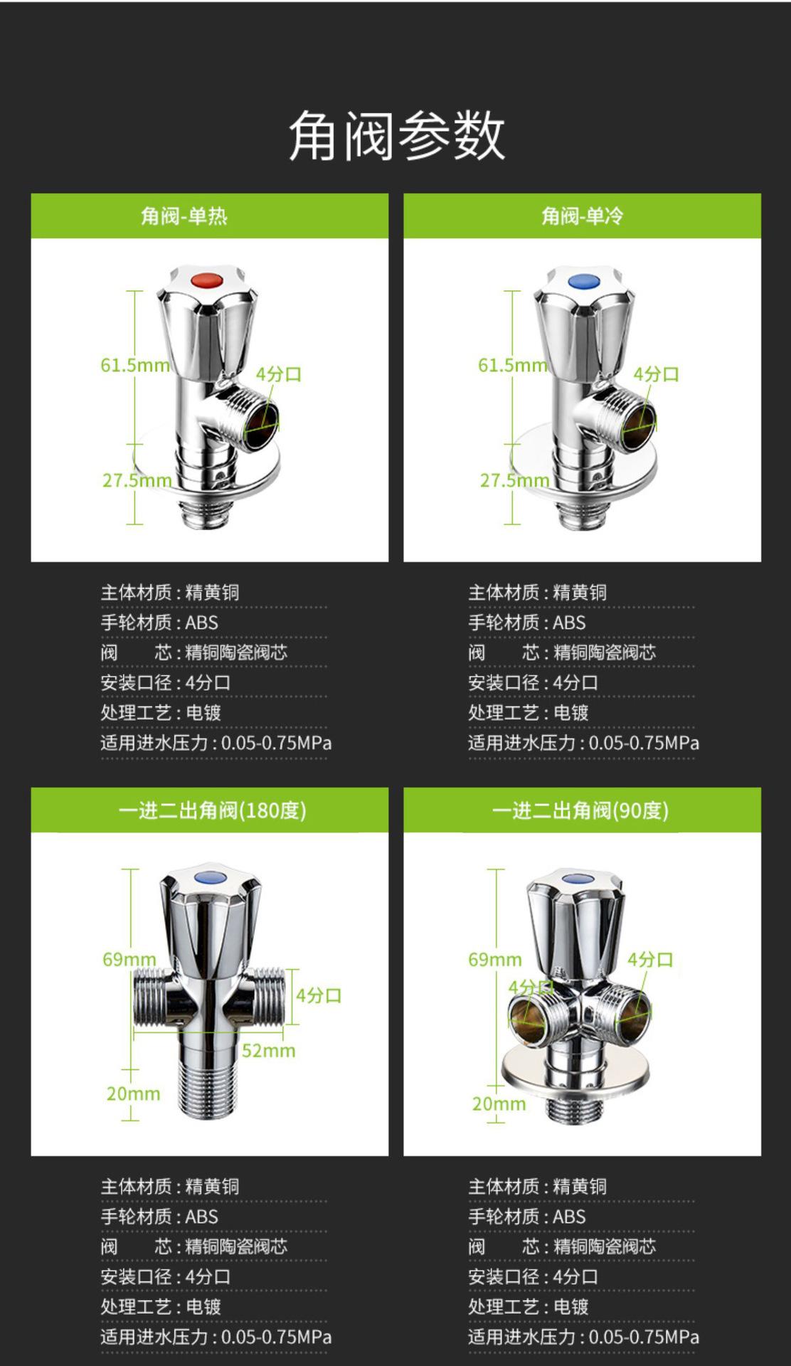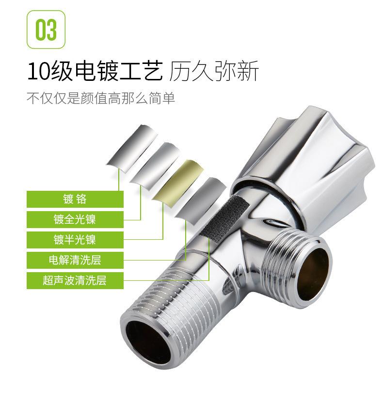Válvula de tres vías de apertura rápida engrosada de latón, una entrada y dos salidas, válvula de doble salida de agua, válvula triangular multifunción para inodoro de cuatro puntos