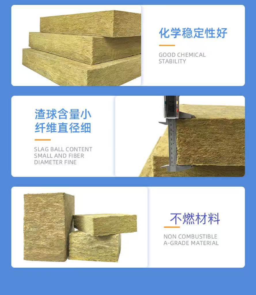 Tablero de Lana de Roca para Pared Exterior de 50 mm de Espesor No Inflamable Incombustible Aislamiento Acústico Tablero Aislante Equipo Duro Tubería Lana de Roca Tablero Insonorizante