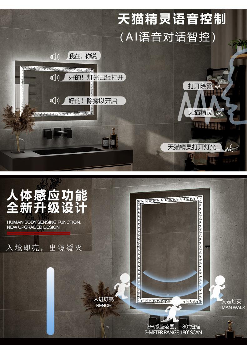 E-Commerce Transfronterizo Espejo Inteligente Cuadrado Pantalla Táctil Sensor Radar Espejo de Baño Montado en la Pared Antivaho Maquillaje