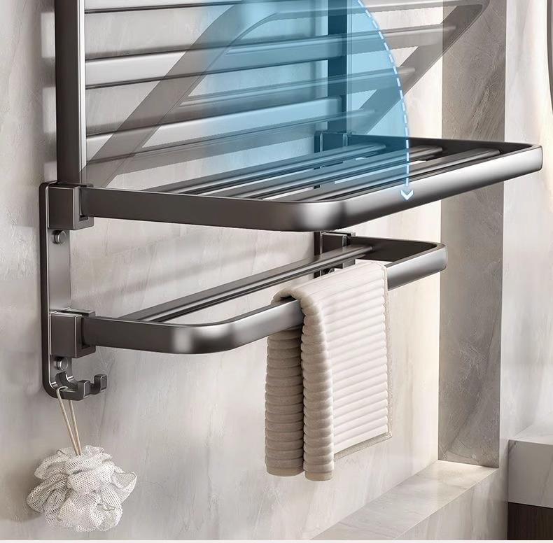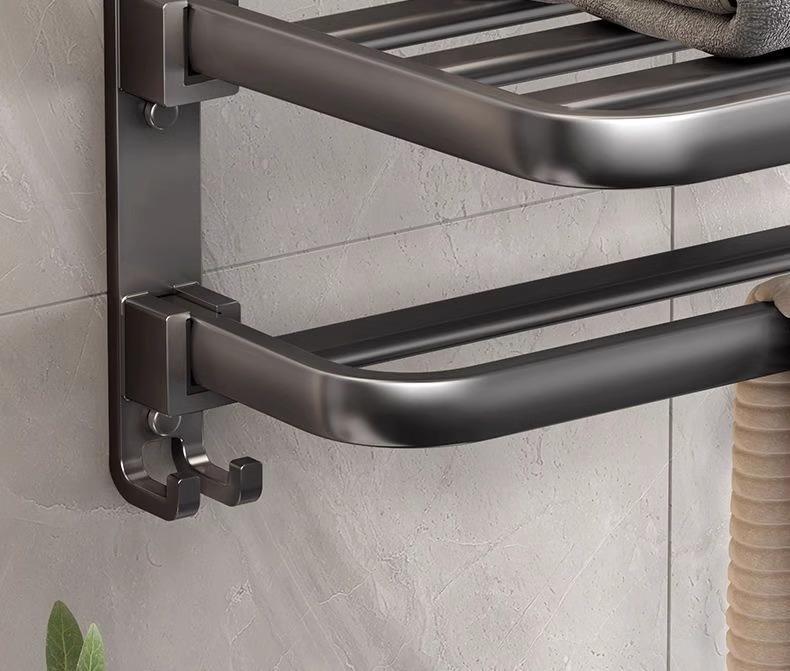 Double folding towel rack with hook 60CM [eight hooks storage]]